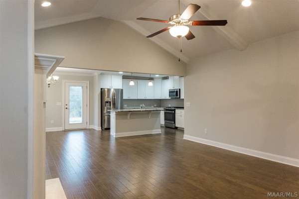 The open-concept layout showcases a large kitchen with all appliances included, a breakfast bar, and a generous pantry, seamlessly flowing into the main living areas—ideal for everyday living and entertaining.