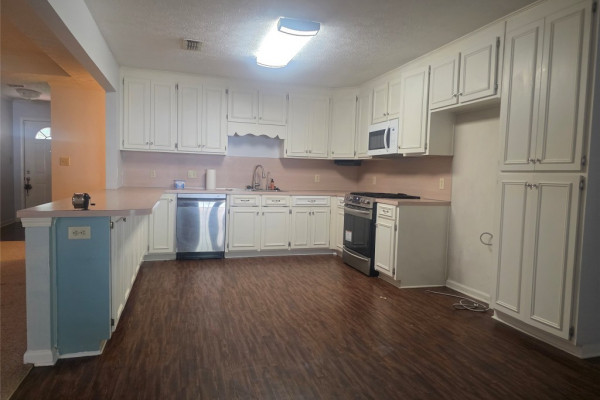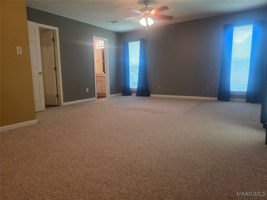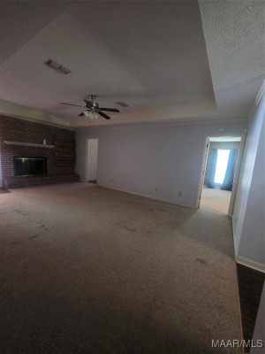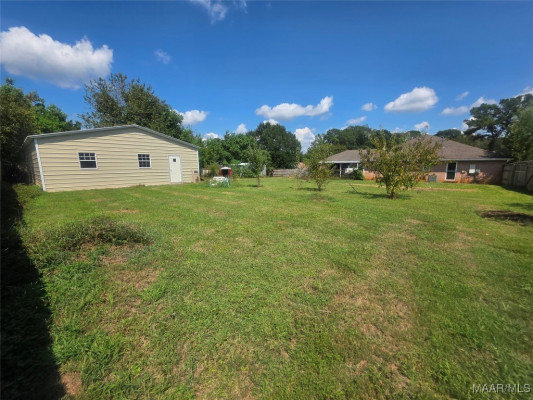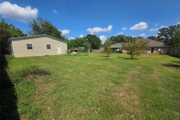 Enter this nearly 2000 sf home through the foyer into an excellent open floor plan with the comfort of a great masonry fireplace surrounded by a brick wall in the den, topped by a box ceiling! A large breakfast bar area separates the kitchen & den, where you can sit on either side. The open kitchen looking into the den has cabinets galore and a pantry, and flows into a dining area which has accommodated a table of 8 & a china cabinet before. If you are looking for a Primary bedroom separate from the other 3 bedrooms, this main bedroom is large enough for a california king sized bed, including an extended area for an office space, a sitting area, nursery, etc.- buyer’s choice! The main bath w/ garden-tub sized shower and a rain shower head/ handheld combo, is flanked by separate walk-in closets AND vanities! Bedrooms 2-4 are also large, w/double closets (one w/ 2 closets!), ceiling fans, with some new paint. Flooring includes laminate wood, carpet & tile, and BRAND NEW CARPET!!!!. Window World Warranty transfers. Laundry room has cabinets, room for freezer, and mud sink. The exterior has surprises also. 2 LOTS enclosed by a privacy fence, with at least 5 Fruit Trees, some blueberry and blackberry bushes, and grape vines. Use your imagination with the oversized corner lot within Grandview Pines that has room for a pool, and includes a less than 2 year old 20×40, 2 Door Bay Garage, She-shed/He-shed/They shed, Dojo, Home Gym, Shop, etc! Drink morning tea or coffee opening the screened windows on the french doors or sit outside beneath the covered patio. The carport has attached storage w/ parking space for at least 4 vehicles. Even your RV can enter the back yard through the 2 separate double privacy fence gates located on either Honeysuckle Ct and Honeysuckle Dr. Minutes from new restaurants, The Millbrook Park and Art Mill, Publix & Walmart, pickleball and other sports at the new 17 Springs complex.