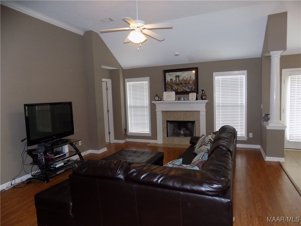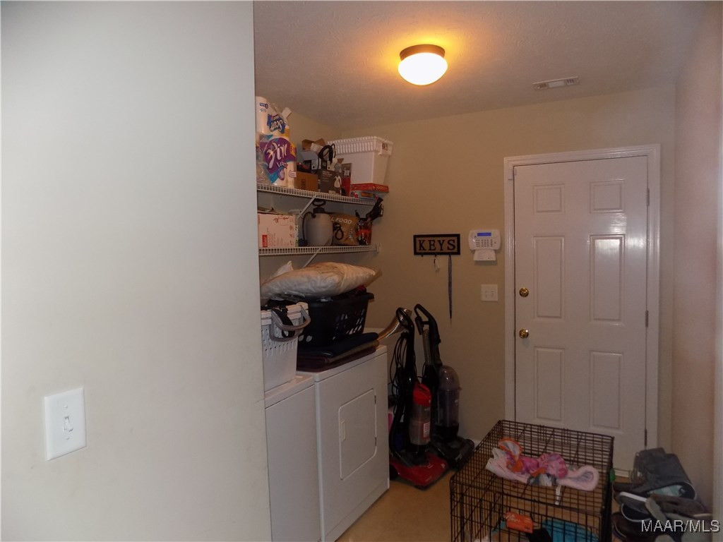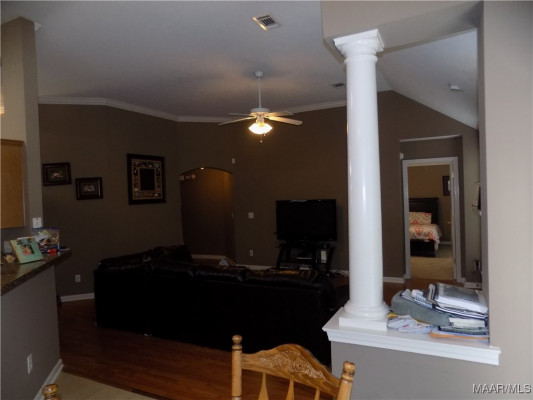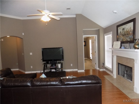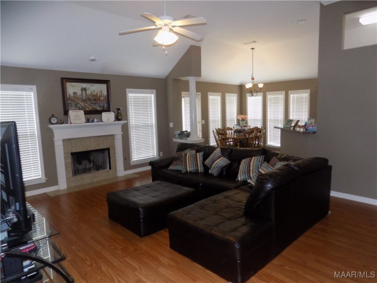 Available October 15, 2025. This three bedroom, 2 bath home is tucked in a cul-de-sac in the Highland Ridge neighborhood. The foyer area leads you in from the front door. To the right is the separate dining room overlooking the front yard. Behind the dining room is the kitchen which has a built in pantry, refrigerator, electric oven, built in microwave and dishwasher. There is a high top breakfast bar that separates the kitchen from the breakfast area and looks over into the living room. The living room as well as the hallway has been upgraded with new luxury vinyl plank flooring. The main bedroom sits to the back of the home off of the living room. This space has a walk in closet and private bath area with double sinks, separate shower and garden tub. The other bedrooms are down a hallway off the back side of the living room and they share a full bath, accessed from the hallway. All bedrooms will have new carpet installed prior to move in. The laundry room is on the way to the garage entry. The large backyard is fully privacy fenced. The neighborhood has an HOA which includes a common pool area. Easy access to I-65 and Hwy 31, you are only minutes away from Montgomery and the military bases.