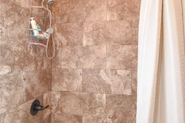 The 3 bedrooms on the other side of the home share a spacious bath with dual sinks and separate bath .