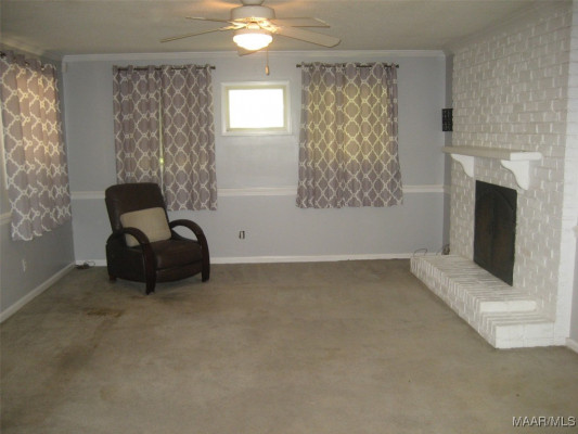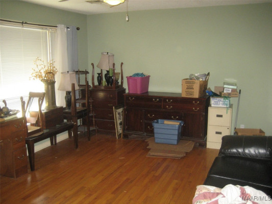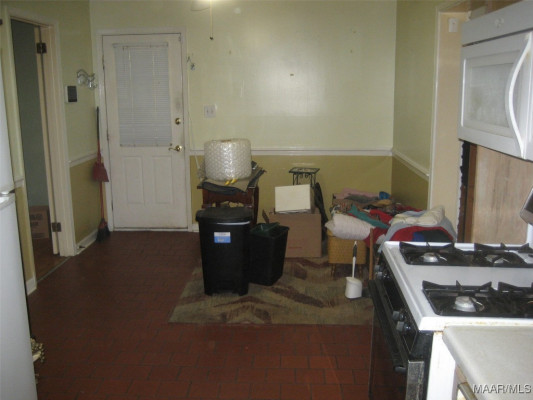 Affordable 2 bedroom/2 bath house. Kitchen/Eat-in has hard tile flooring and gas stove. Refrigerator remains. Original hardwood floors throughout living room, front bath, both bedrooms, and hall. Front bath has separate toilet and tub/shower combo area with hard tile flooring. Ceiling fans in living room, both bedrooms, and den. Den has carpet flooring. House is conveniently located near