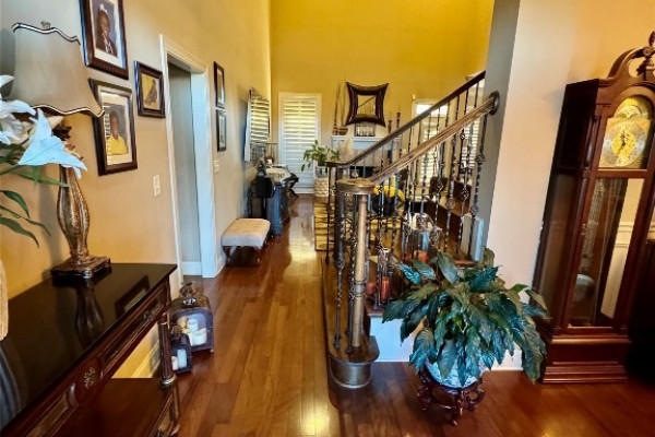If you are looking for a place to call HOME, THIS IS IT!!! Located in the sought-after Breckenridge community; this property offers an abundance of desirable features for comfortable living. Upon entering the home, you will be greeted with breathtaking 20 ft ceilings, a striking architectural wrought iron staircase, 5 spacious bedrooms, and 4 bathrooms (Master bedroom and 1 bedroom located downstairs with remaining bedrooms upstairs). The fully furnished kitchen features stainless steel appliances, a double oven, and granite countertops. Furthermore, the property provides additional upstairs space for various activities, whether it be for a home theater, office, or additional living area. The covered patio is a bonus area to enjoy gatherings with family and friends. As part of the esteemed Breckenridge community, you will have access to an array of amenities such as a tennis court, fitness center, pool, and more, ensuring a lifestyle of comfort and convenience. Make plans to see this remarkable home TODAY!