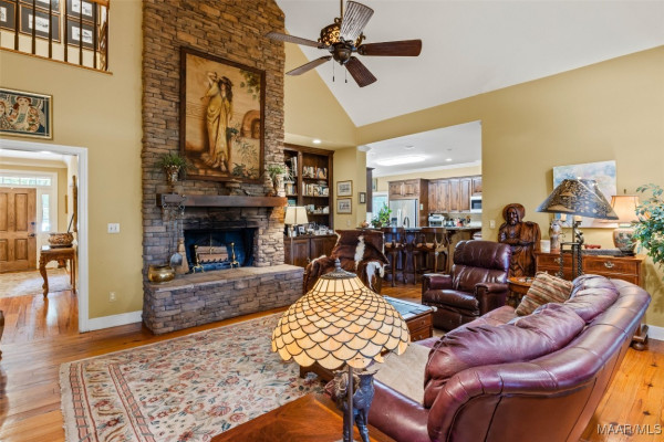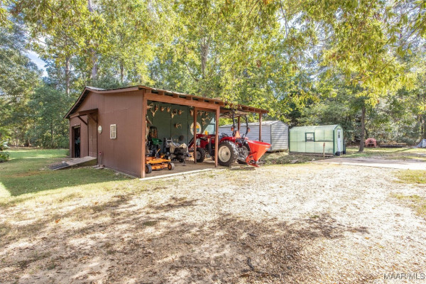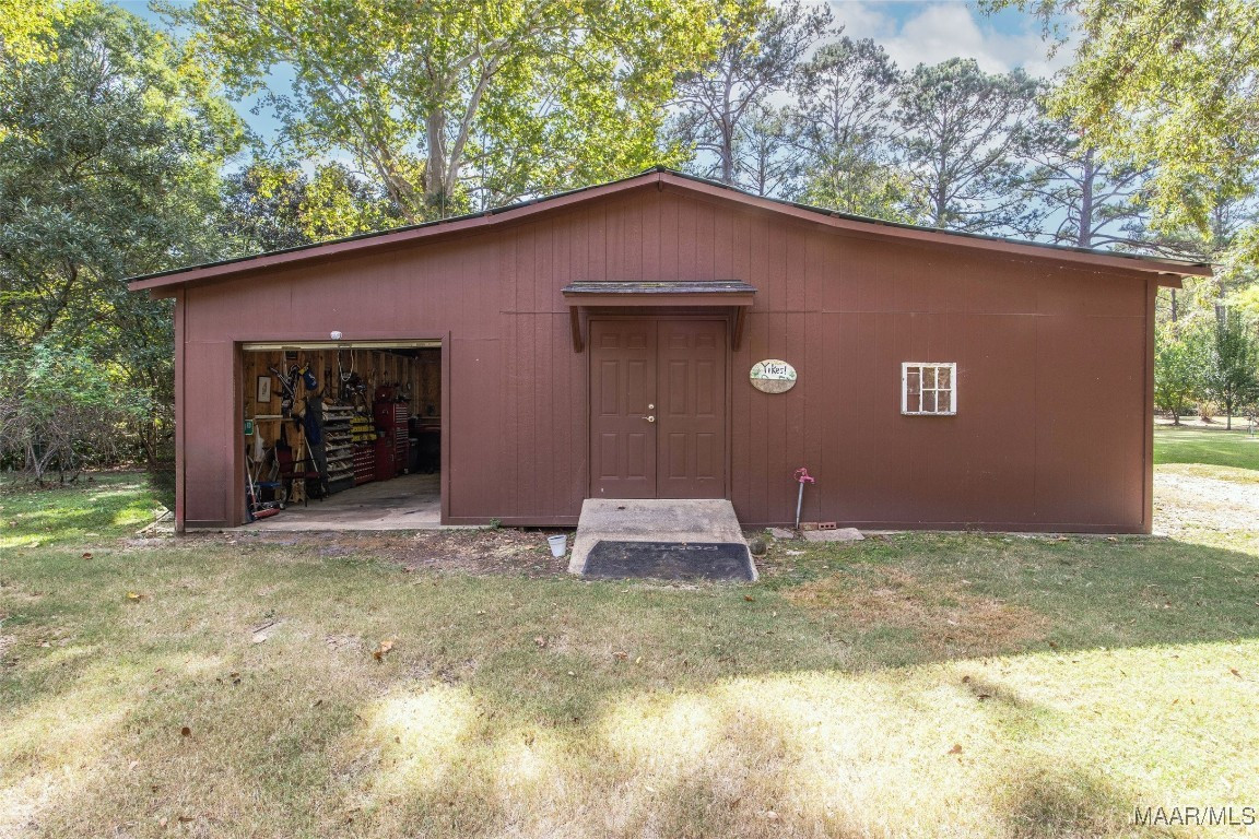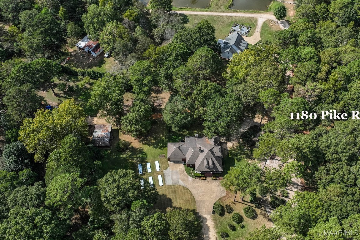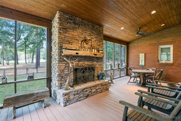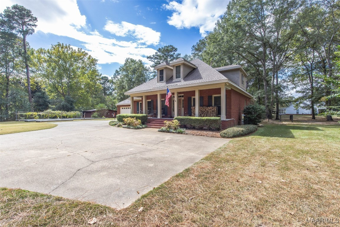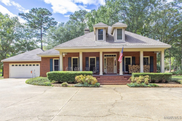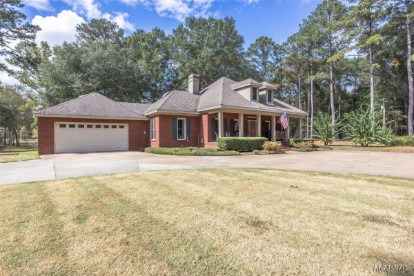 Private Pike Road country estate on 3 beautiful acres with orchard, nice yard and mature pine trees. Gorgeous living spaces with pine floors includes a vaulted great room with fireplace and easy access to expansive screened in porch. Spacious dining room, and nicely updated kitchen with stainless appliances and breakfast area. First floor primary bedroom boasts well appointed bath with large walk in shower. Guest bedroom with full bath also on first floor. Level 2 consists of two bedrooms and a full bath. Fabulous rear screened in porch with wood ceiling and impressive wood burning fireplace with gas lighter. Stunning grounds with well fed irrigation. Large outdoor shop has two bays and additional covered area. Relax on the front porch and take in the beauty and serenity of this incredible property. Do not miss this lovely 4 bedroom home in a coveted Pike Road location!