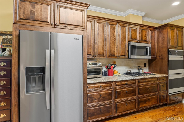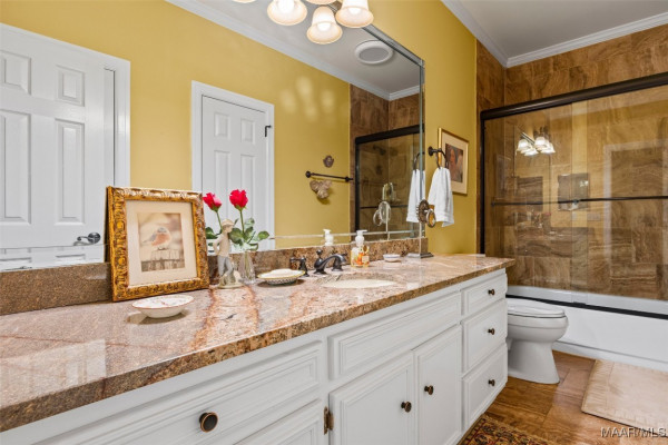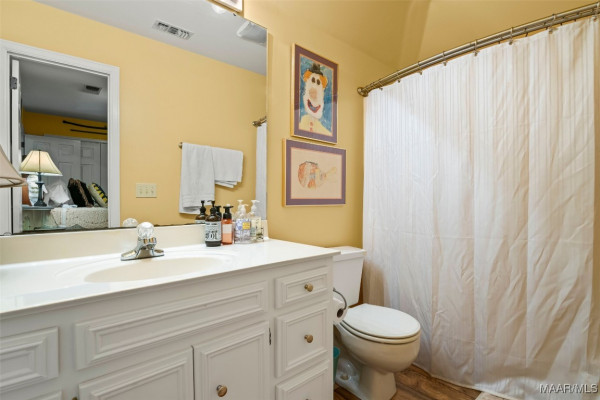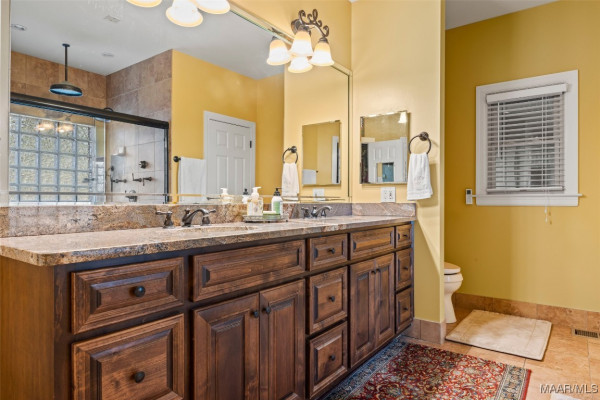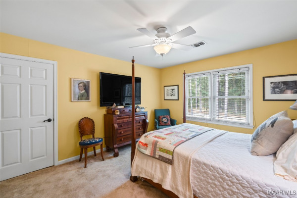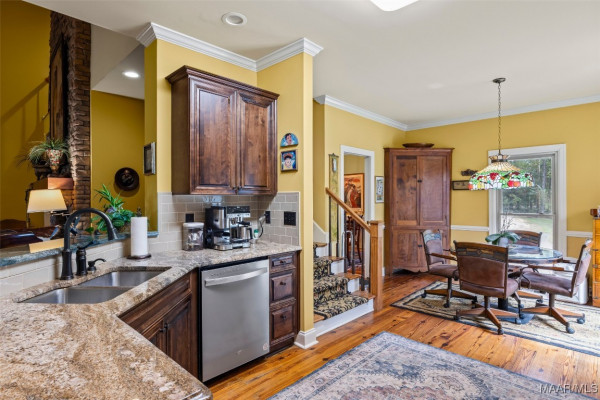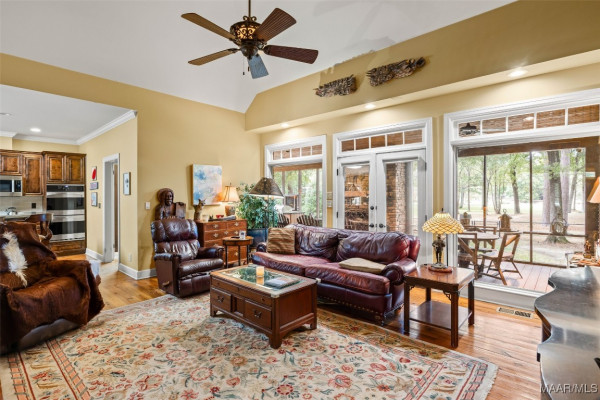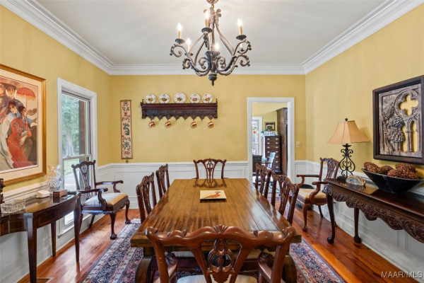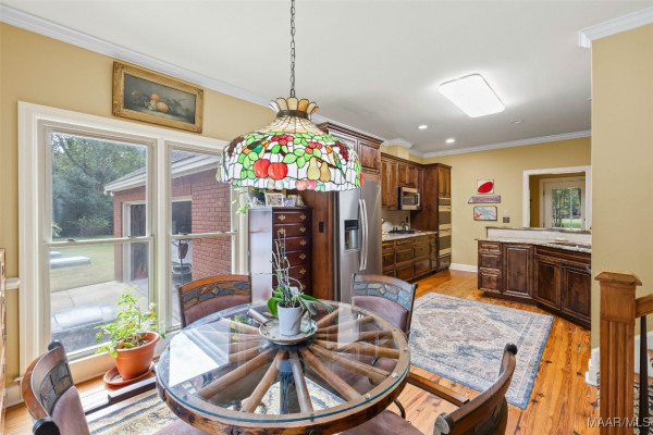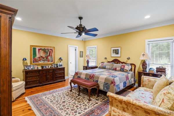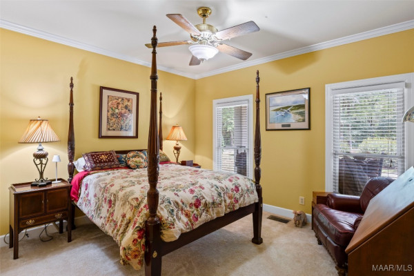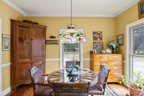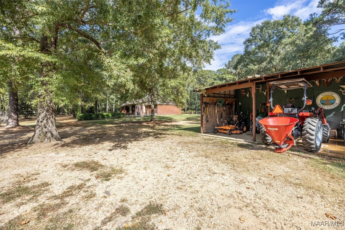 Private Pike Road country estate on 3 beautiful acres with orchard, nice yard and mature pine trees. Gorgeous living spaces with pine floors includes a vaulted great room with fireplace and easy access to expansive screened in porch. Spacious dining room, and nicely updated kitchen with stainless appliances and breakfast area. First floor primary bedroom boasts well appointed bath with large walk in shower. Guest bedroom with full bath also on first floor. Level 2 consists of two bedrooms and a full bath. Fabulous rear screened in porch with wood ceiling and impressive wood burning fireplace with gas lighter. Stunning grounds with well fed irrigation. Large outdoor shop has two bays and additional covered area. Relax on the front porch and take in the beauty and serenity of this incredible property. Do not miss this lovely 4 bedroom home in a coveted Pike Road location!
