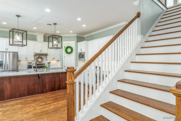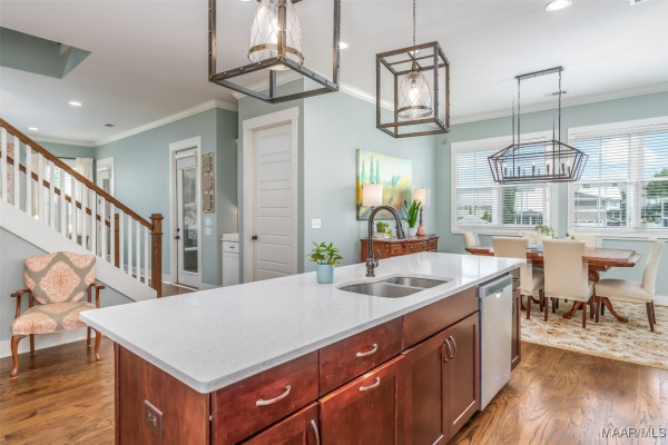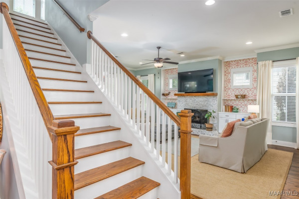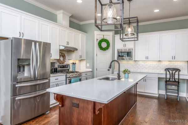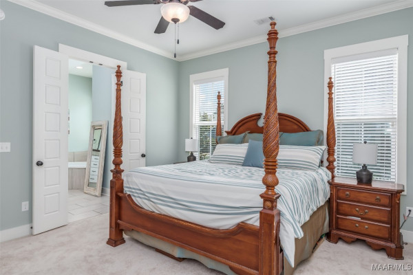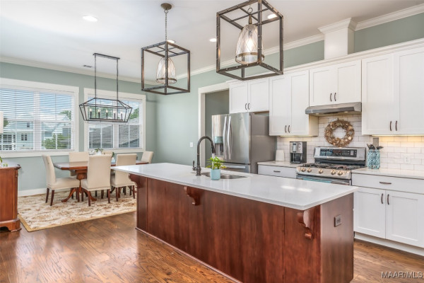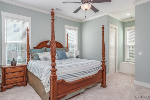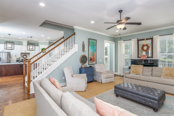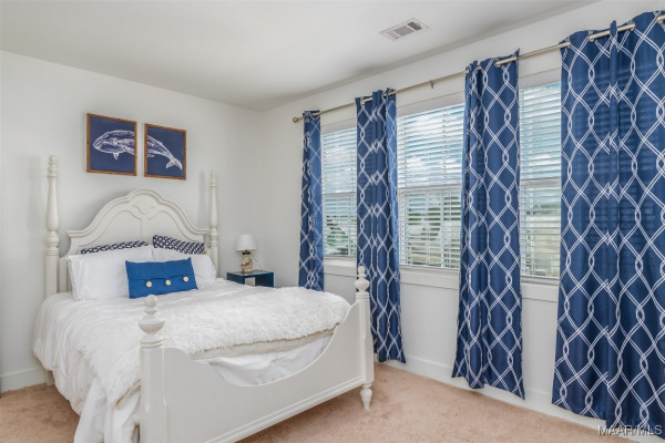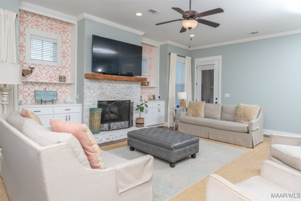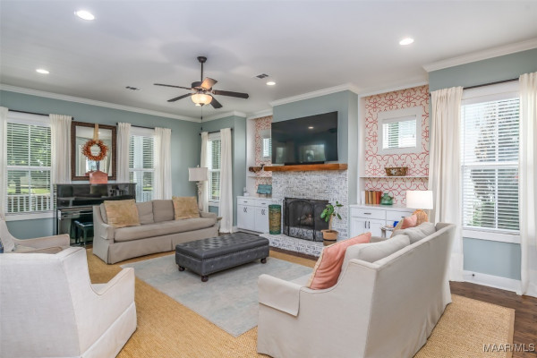 Stunning one of a kind built home in the Waters subdivision! This custom home was built by Jim Mathews Builders. The front porch has views of the Avenue and is only a few blocks from the Town Square. You couldn’t ask for a better location at the front of the neighborhood. This home has a great backyard with a large carport and tons of parking. There is also an extra covered area for your Golf Cart. The Sellers thought of everything, even a grilling porch that overlooks the largest green space in the neighborhood. You can’t help but fall in love with the screened in porch that has a Gas Fireplace. Once inside the home you will find the living area that has lots of windows that bring in natural light. The main areas have gorgeous hardwood floors, while the bedrooms have carpet. Bedroom carpet was just replaced and is brand new! In the Kitchen you have an island with Quartz countertops, Stainless Steel appliances, and plenty of cabinet space. Great light fixtures are featured throughout the home as well. The Master Suite is on the 1st floor and has his and her closets along with double vanities. There is a separate tub/shower in the Master Bath. Also downstairs is the Laundry/Mud room near the back door. The last room downstairs is the Office. This room really could have multiple uses such as a small guest room, but the current owners used it as an office. Upstairs you will find two full bathrooms with Quartz countertops along with three guest bedrooms. You will want to check out the huge bonus room as well. One other feature that needs to be mentioned is the Storm Shelter that was built underneath the Back Porch. This home is so pretty it could truly be shown in Southern Living magazine! Come get your dream home and live in the dream neighborhood. The Waters subdivisions has tons of amenities including 3 Tennis courts, 4 Pickleball courts, beautiful Lakes, 2 Pools, and much more! Give us a call or bring your favorite realtor out today!