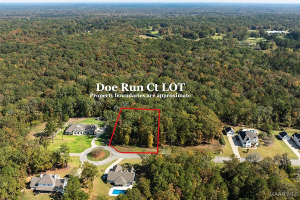 Discover the perfect blend of tranquility and convenience with this 1.06-acre wooded lot in the desirable Doe Run community of Pike Road, Alabama. Nestled in a small, exclusive cul-de-sac neighborhood, this homesite is surrounded by mature trees, offering a serene and private setting for your dream home. Bring your vision to life with the freedom to choose your own builder and create a custom retreat tailored to your lifestyle. Zoned for top-rated Pike Road Schools, this property provides an ideal foundation while remaining just minutes from shopping, dining, and everyday essentials. Start your next chapter today on this beautiful, expansive lot!