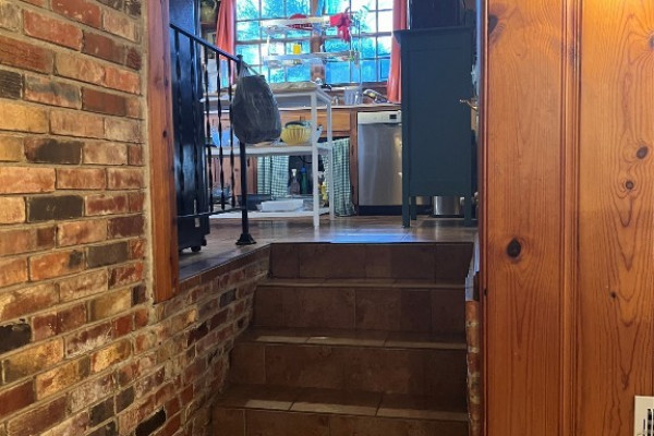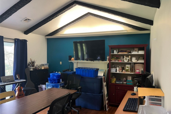The entry level includes the kitchen and dining area, a full bath, and a bedroom—ideal for guests or a home office. Just upstairs, the second level features a welcoming living room with a cozy fireplace and an additional bedroom.