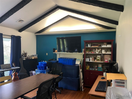 The entry level includes the kitchen and dining area, a full bath, and a bedroom—ideal for guests or a home office. Just upstairs, the second level features a welcoming living room with a cozy fireplace and an additional bedroom.