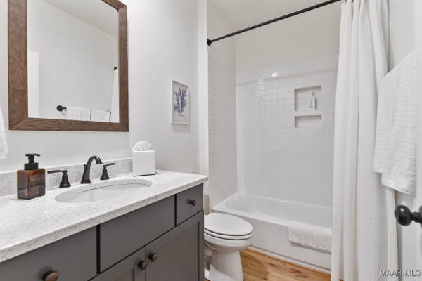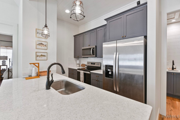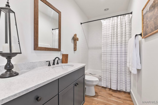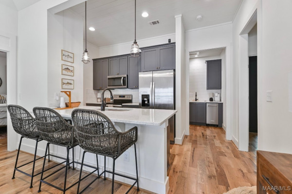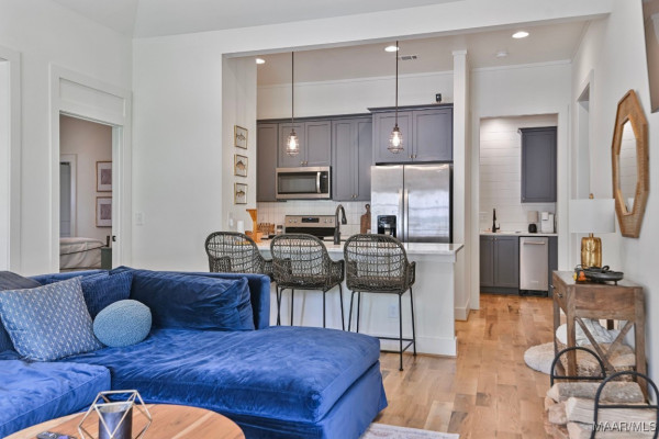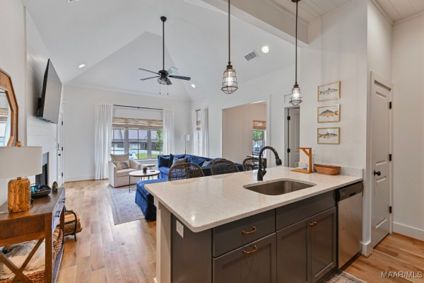 Like new! One-owner 3-bedroom, 2-bath home in The Village at Kowaliga Bay. This never-rented property boasts custom upgrades including hardwood floors with upgraded stain, quartz countertops, an ice maker, a double-bin trash drawer in the kitchen, dual sinks in the master bath, a shed roof for golf cart storage, and a rear screened porch. There’s also a wet bar/coffee station off the kitchen. The main living area features a vaulted ceiling and fireplace. This home comes furnished and with a 4 -seater EZ-GO golf cart that is lifted and has LED lights. Amenities include lawn care, a pool, fitness center, clubhouse, boat slips, boat ramp, and onsite boat storage. Perfect for short-term rental potential. Call now for a private showing!