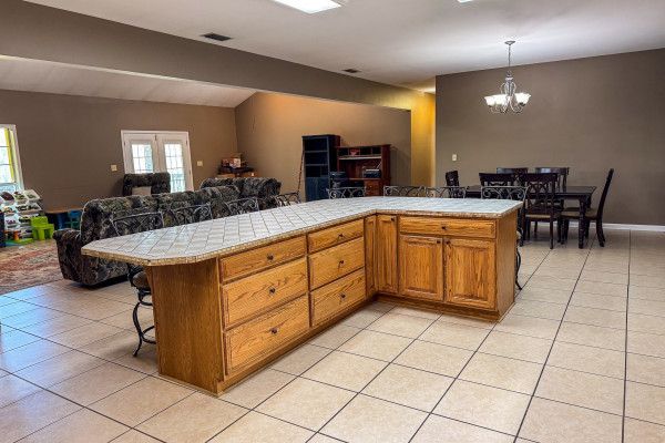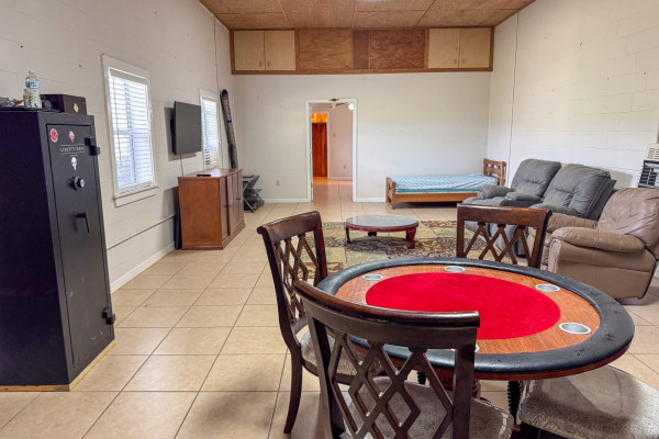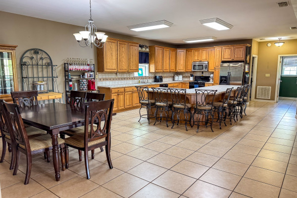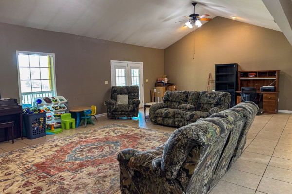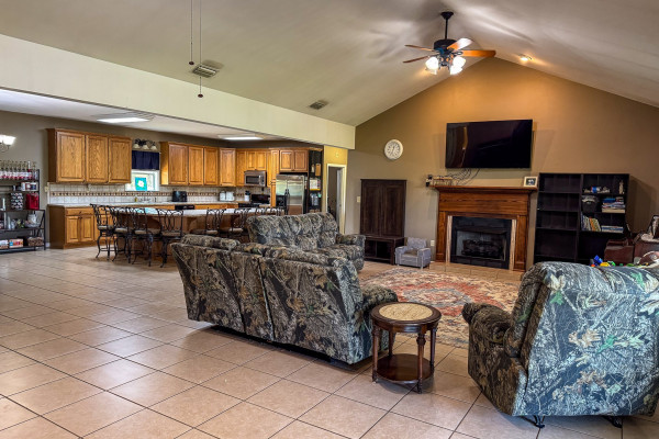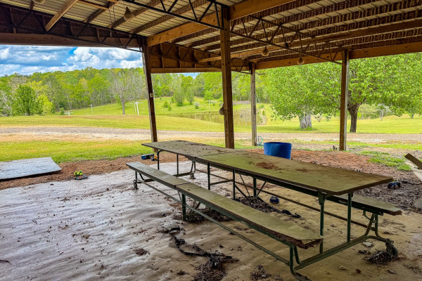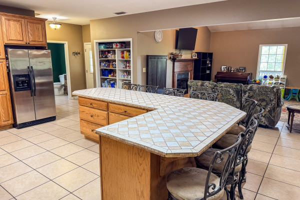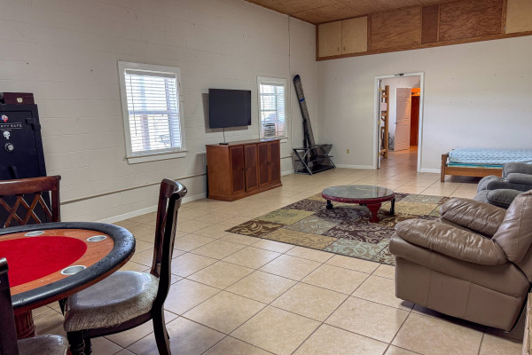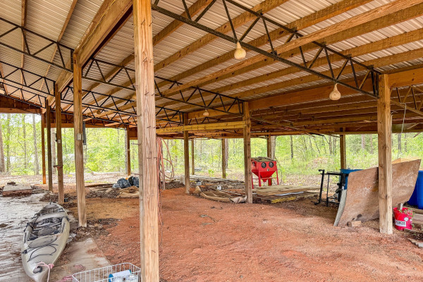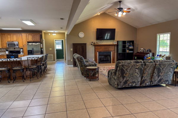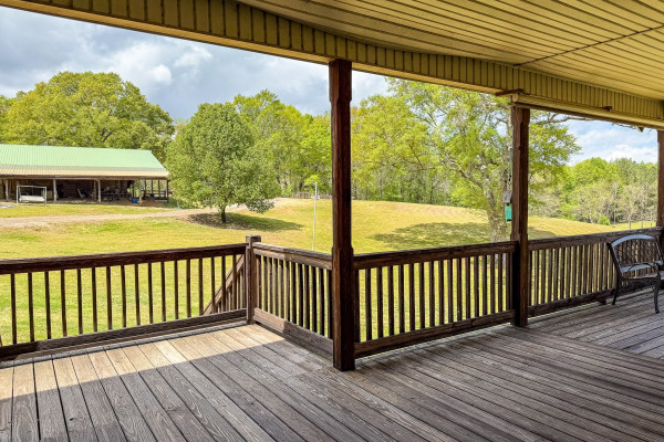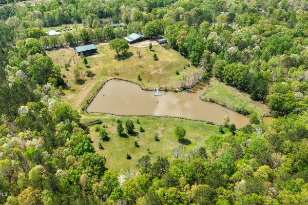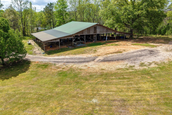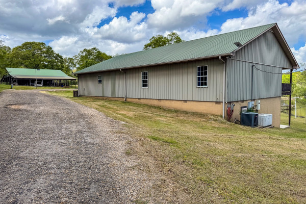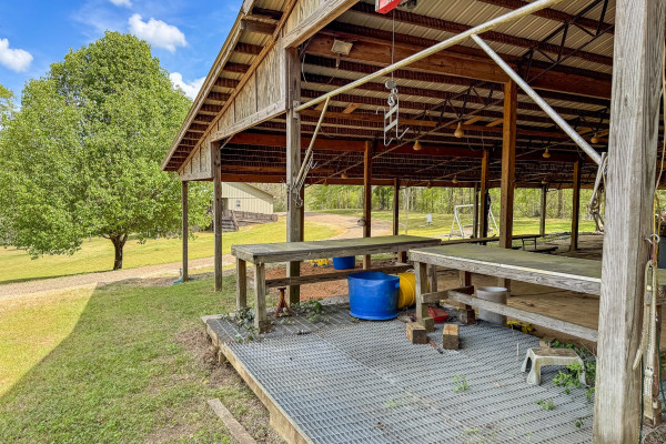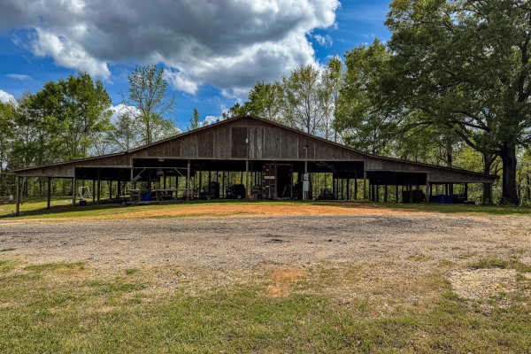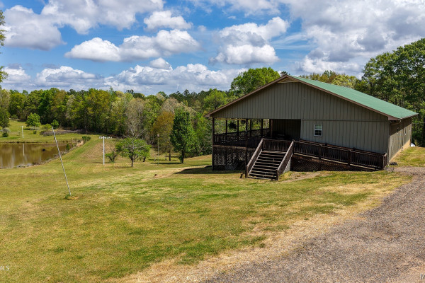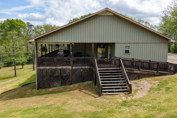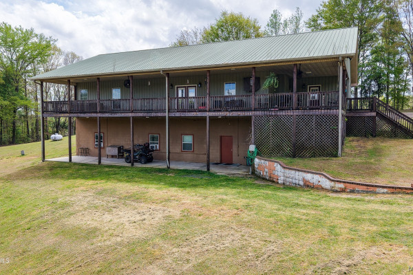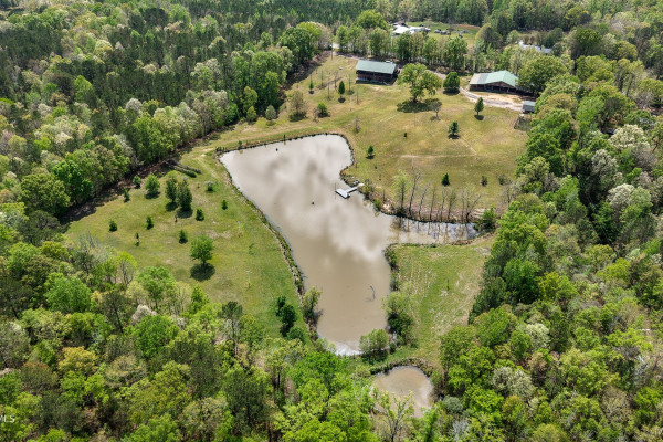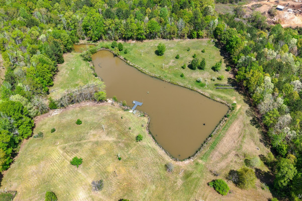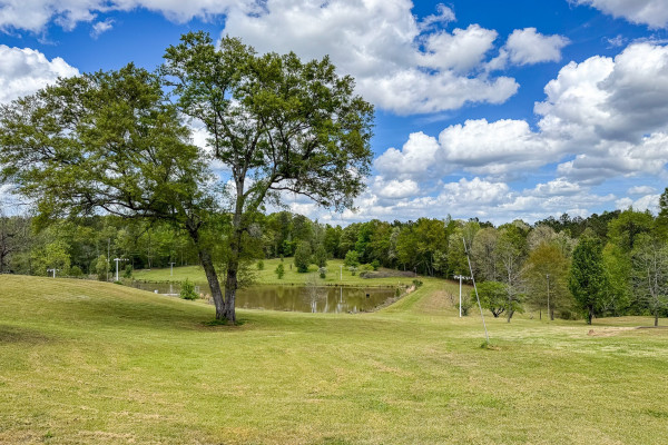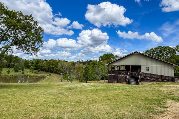 Too many features to list….Plenty of room to roam! Built in 2011, this property has SOOOO much to offer the avid sportsman….And conveniently located! The oversized back porch provides a gorgeous view of the stocked pond as well as frequent sightings of deer, turkey and other wildlife. The pier has Trex decking and is a great place for a fish feeder. Main Level, Open Floor Plan: Great room with cathedral ceiling & propane gas log fireplace, Dining area, and sizable Kitchen with a HUGE work island/breakfast bar. 3 bedrooms, 2.5 baths and Laundry room complete the 2,463+/- square footage of the main floor. The 1,053+/- Sq Ft finished basement serves as a storm shelter or guest quarters….spacious Recreation room with living/dining area, wired/plumbed for kitchenette, full bath, Cedar closet and bunk room that sleeps 7. Ohhh, talk about storms….The Tankless water heater and generator are especially appreciated when the power goes out. The 120′ x 80’+/- pole barn has a Game & Fish-cleaning station, a container/workshop and plenty of storage for your ATV, tractor and implements. Paved Drive. PLUS- 2 scuppernong rows & LOTS of PEAR TREES! Need room for more guests?? Metal RV carport and RV hookup. Utilities: AL Power, City of Pine Hill water, septic.