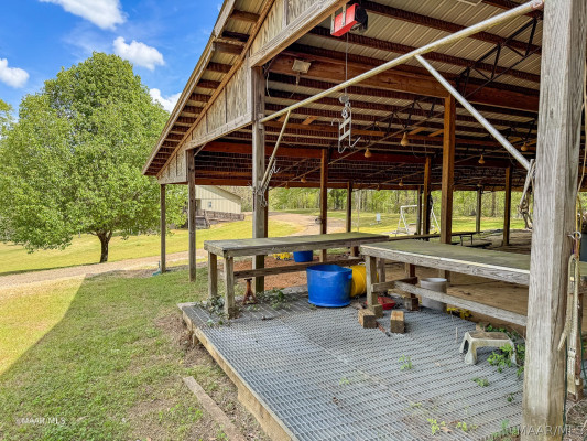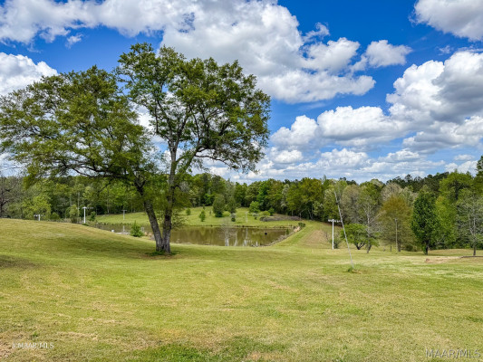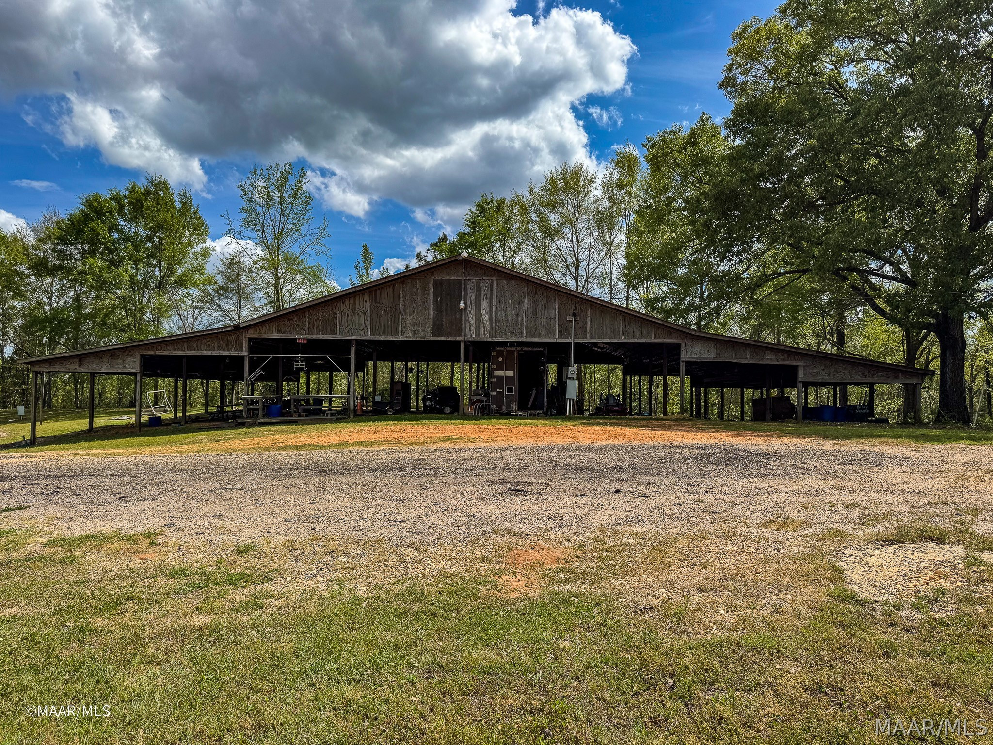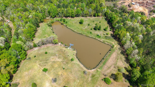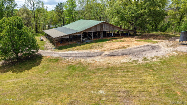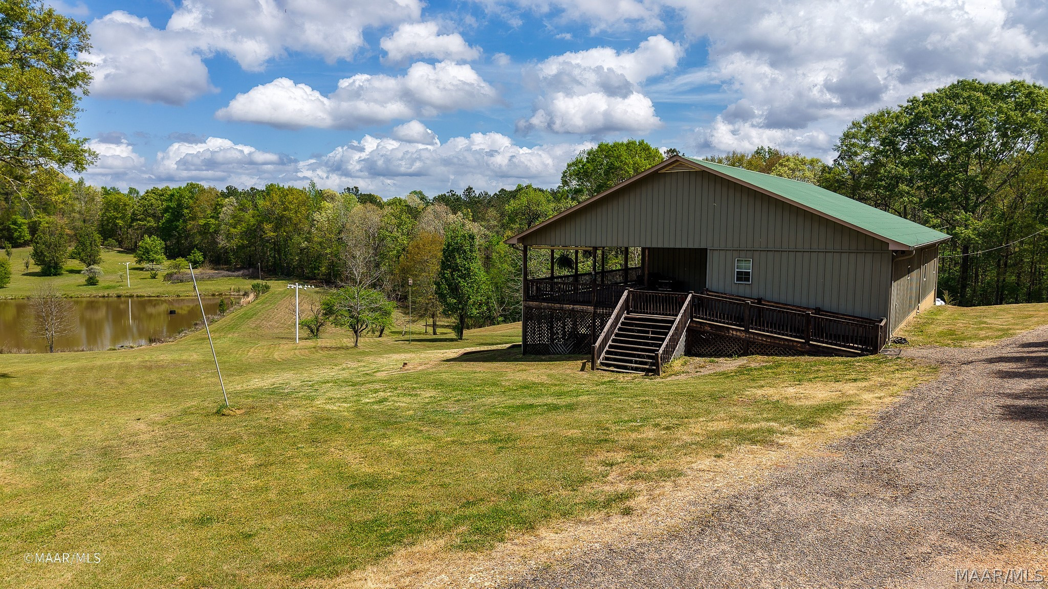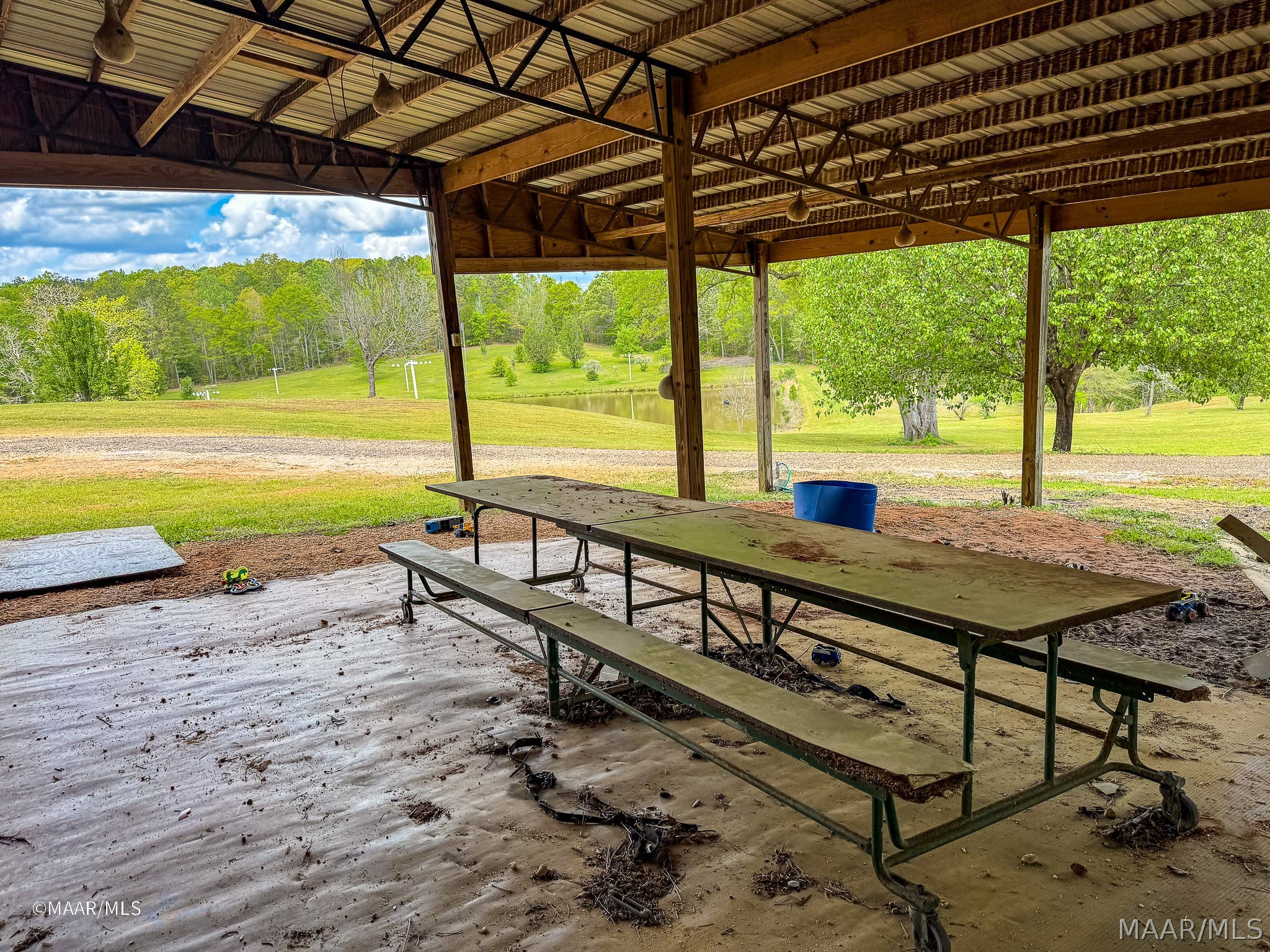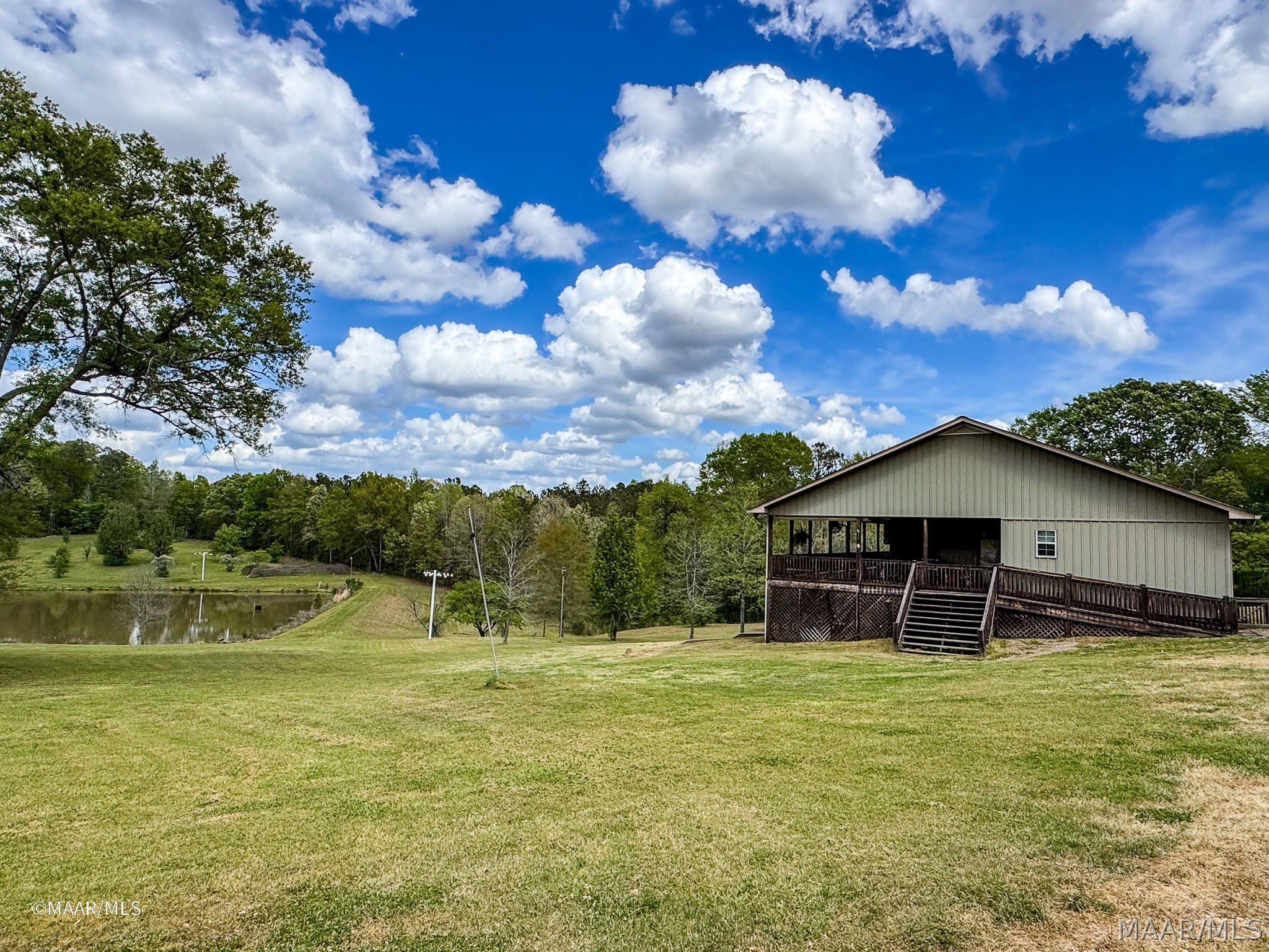 Too many features to list….Plenty of room to roam! Built in 2011, this property has SOOOO much to offer the avid sportsman….And conveniently located! The oversized back porch provides a gorgeous view of the stocked pond as well as frequent sightings of deer, turkey and other wildlife. The pier has Trex decking and is a great place for a fish feeder. Main Level, Open Floor Plan: Great room with cathedral ceiling & propane gas log fireplace, Dining area, and sizable Kitchen with a HUGE work island/breakfast bar. 3 bedrooms, 2.5 baths and Laundry room complete the 2,463+/- square footage of the main floor. The 1,053+/- Sq Ft finished basement serves as a storm shelter or guest quarters….spacious Recreation room with living/dining area, wired/plumbed for kitchenette, full bath, Cedar closet and bunk room that sleeps 7. Ohhh, talk about storms….The Tankless water heater and generator are especially appreciated when the power goes out. The 120′ x 80’+/- pole barn has a Game & Fish-cleaning station, a container/workshop and plenty of storage for your ATV, tractor and implements. Paved Drive. PLUS- 2 scuppernong rows & LOTS of PEAR TREES! Need room for more guests?? Metal RV carport and RV hookup. Utilities: AL Power, City of Pine Hill water, septic.