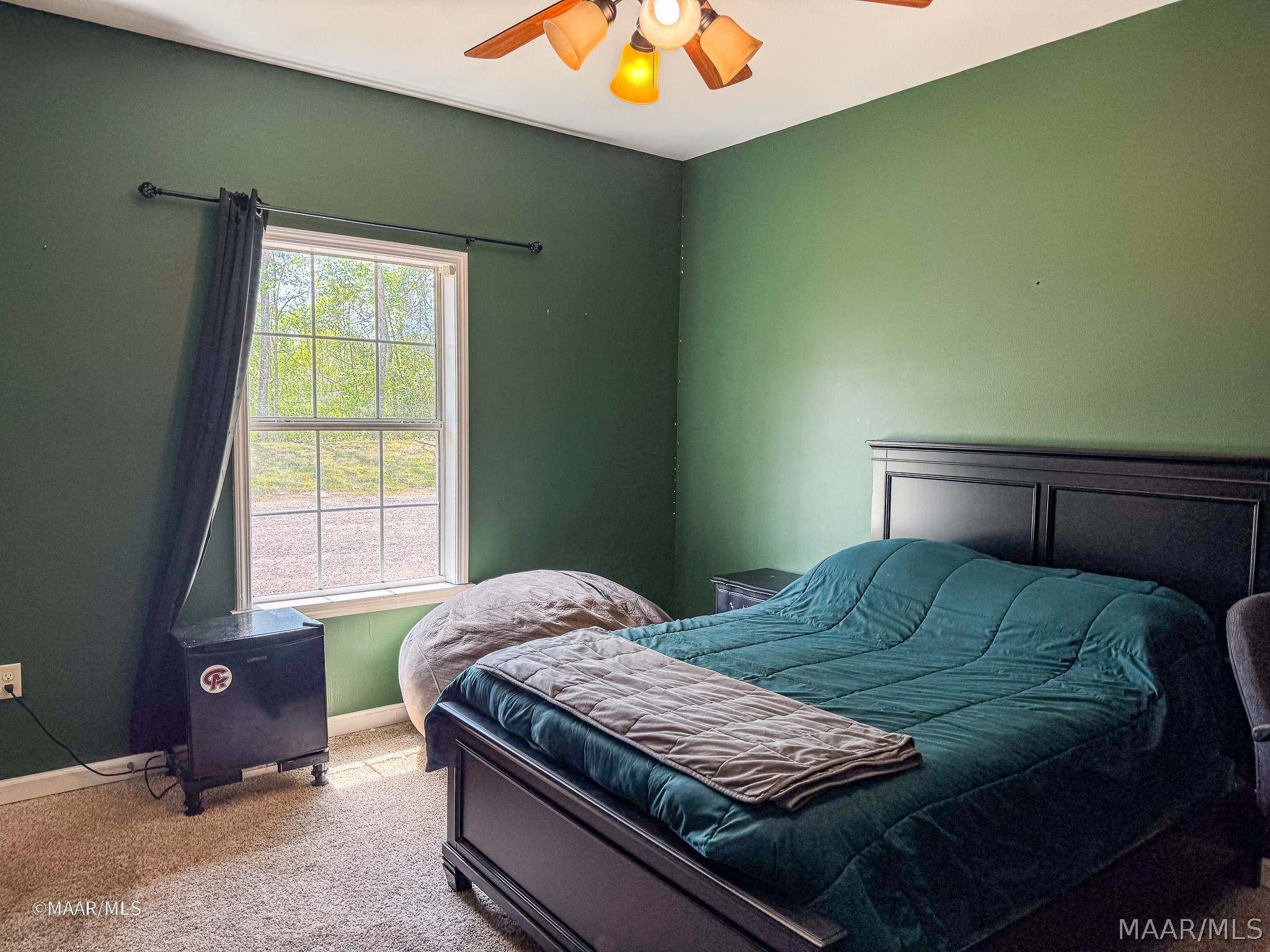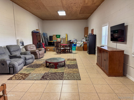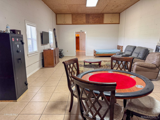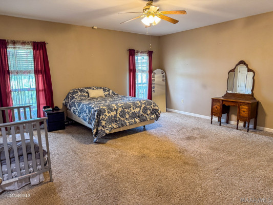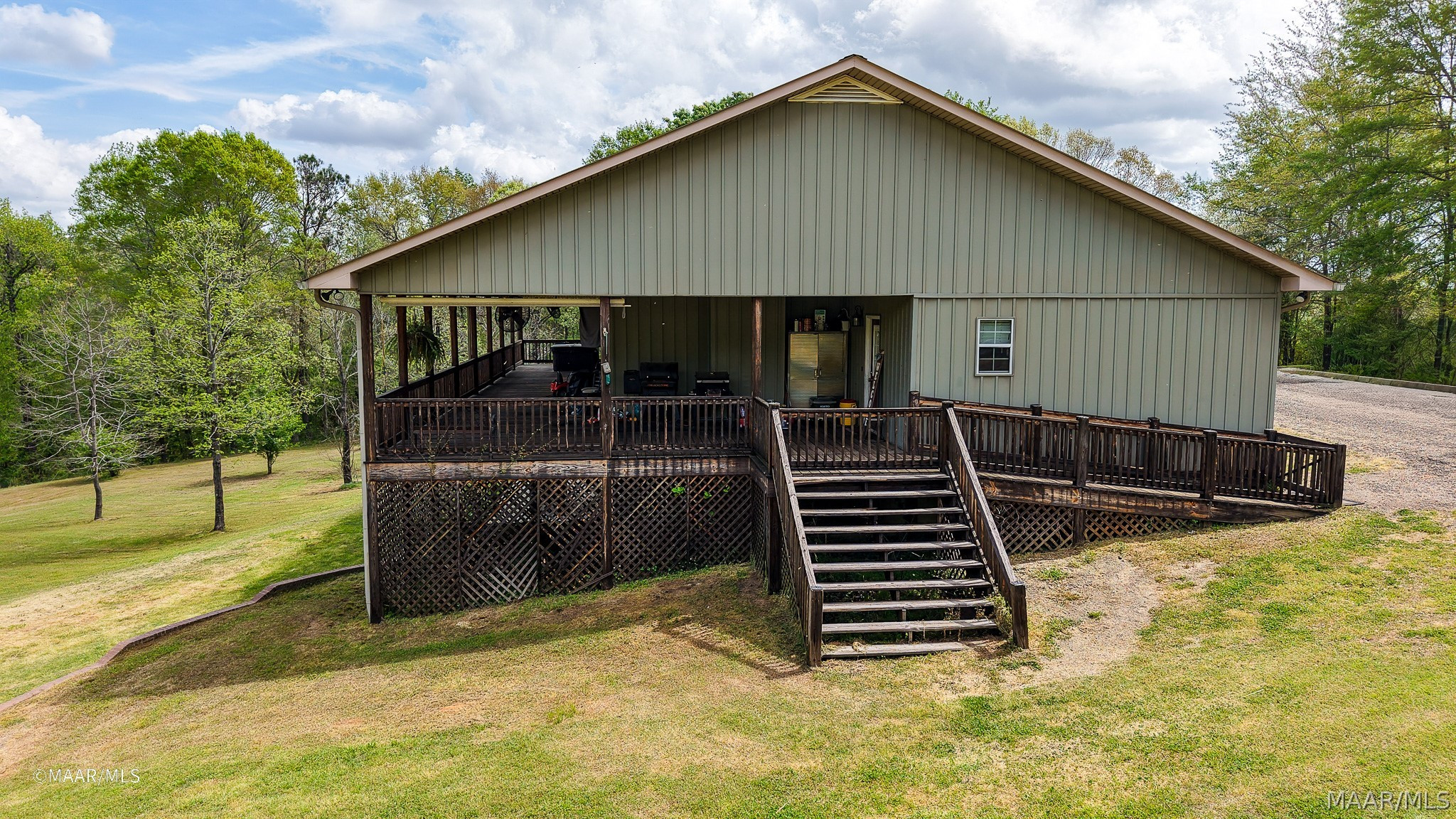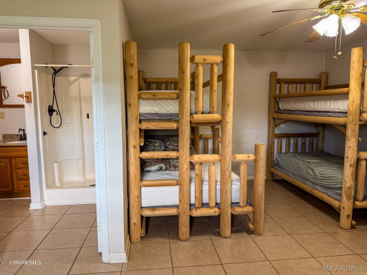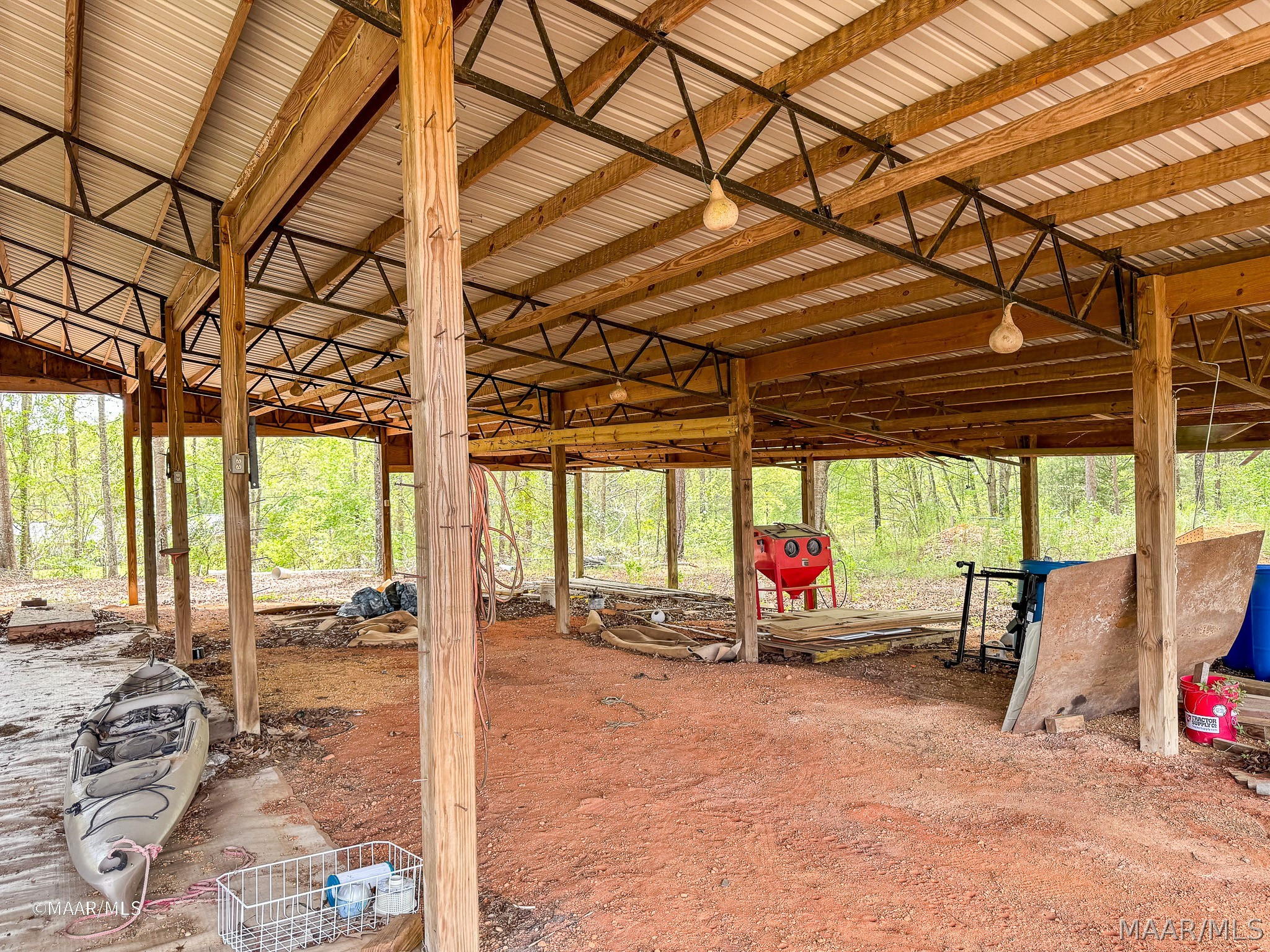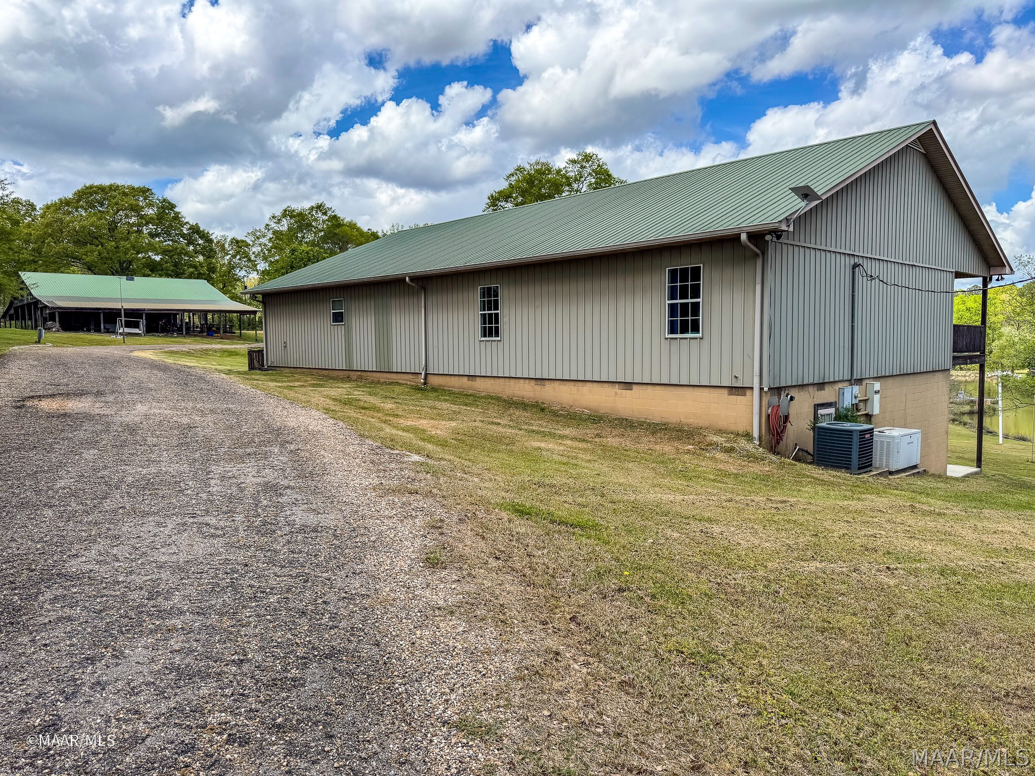Too many features to list….Plenty of room to roam! Built in 2011, this property has SOOOO much to offer the avid sportsman….And conveniently located! The oversized back porch provides a gorgeous view of the stocked pond as well as frequent sightings of deer, turkey and other wildlife. The pier has Trex decking and is a great place for a fish feeder. Main Level, Open Floor Plan: Great room with cathedral ceiling & propane gas log fireplace, Dining area, and sizable Kitchen with a HUGE work island/breakfast bar. 3 bedrooms, 2.5 baths and Laundry room complete the 2,463+/- square footage of the main floor. The 1,053+/- Sq Ft finished basement serves as a storm shelter or guest quarters….spacious Recreation room with living/dining area, wired/plumbed for kitchenette, full bath, Cedar closet and bunk room that sleeps 7. Ohhh, talk about storms….The Tankless water heater and generator are especially appreciated when the power goes out. The 120′ x 80’+/- pole barn has a Game & Fish-cleaning station, a container/workshop and plenty of storage for your ATV, tractor and implements. Paved Drive. PLUS- 2 scuppernong rows & LOTS of PEAR TREES! Need room for more guests?? Metal RV carport and RV hookup. Utilities: AL Power, City of Pine Hill water, septic.