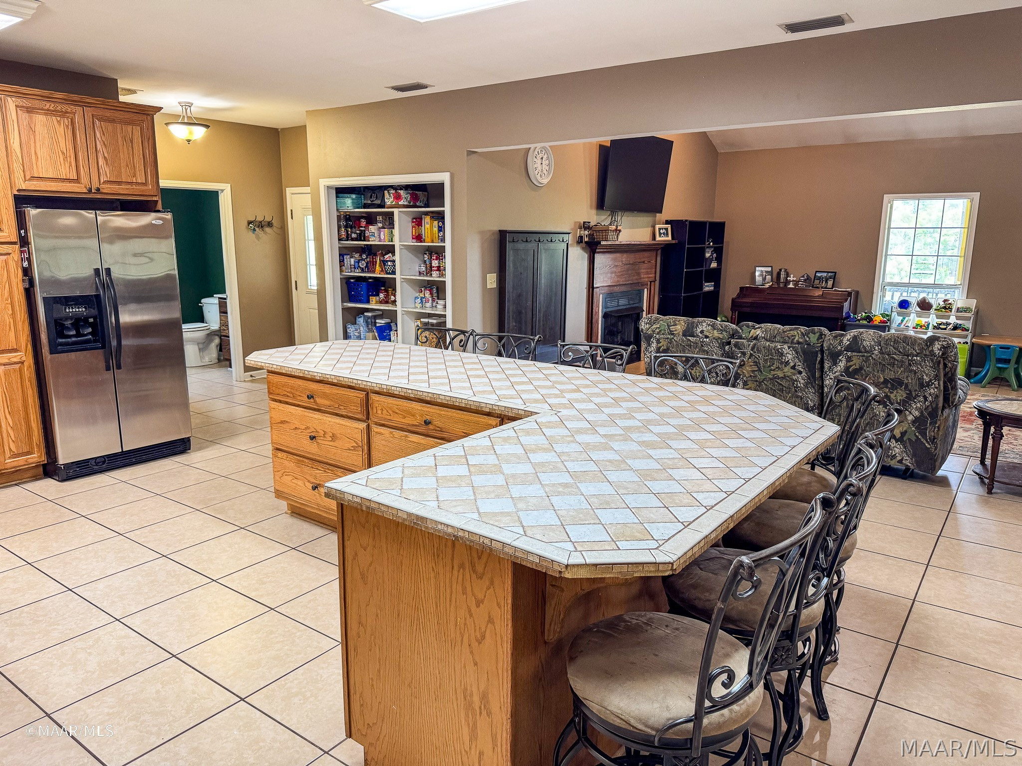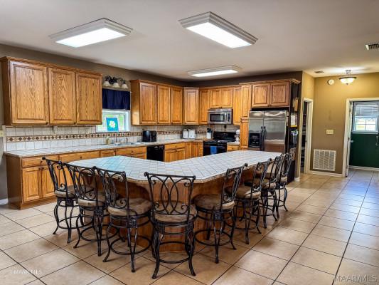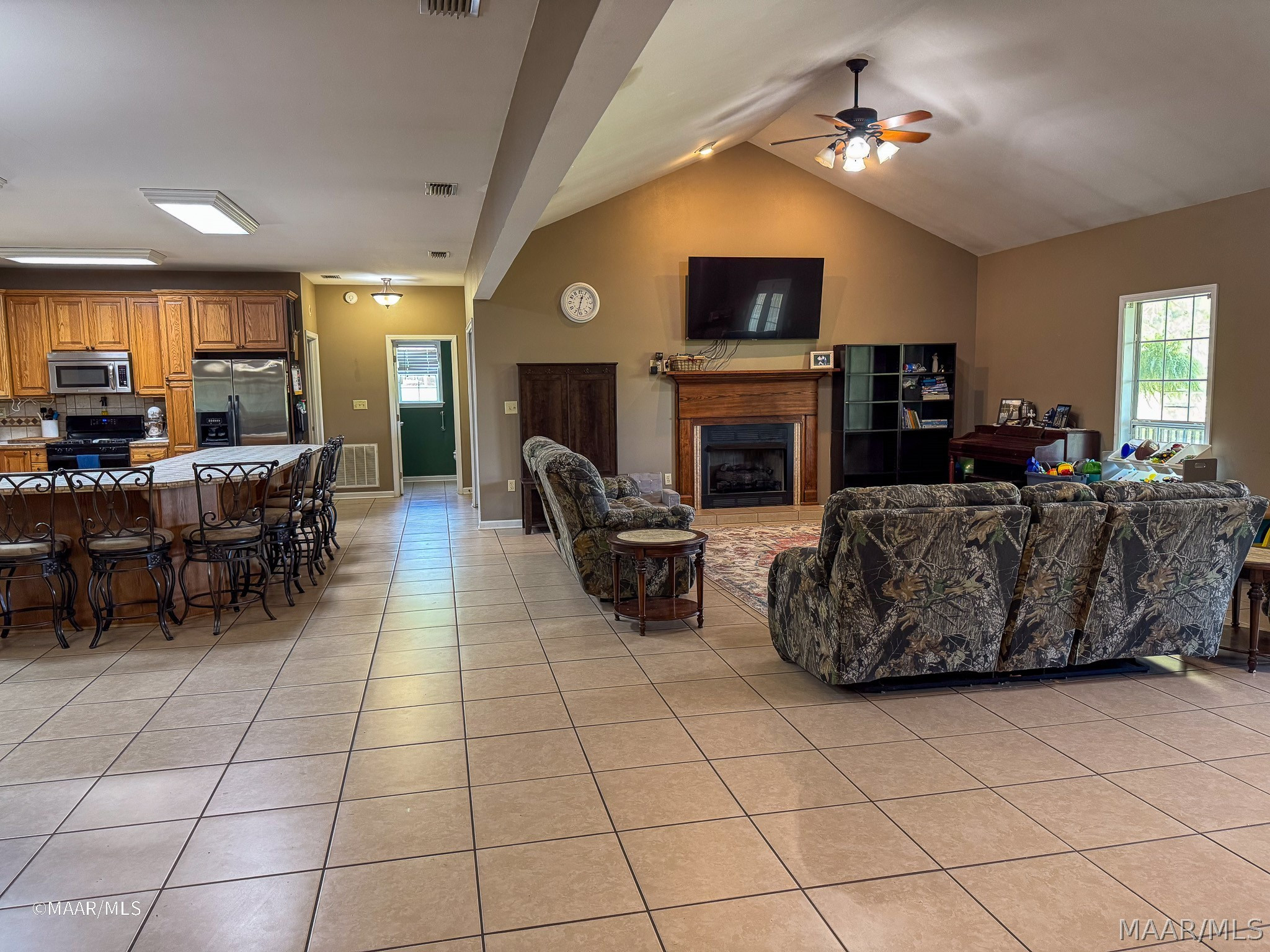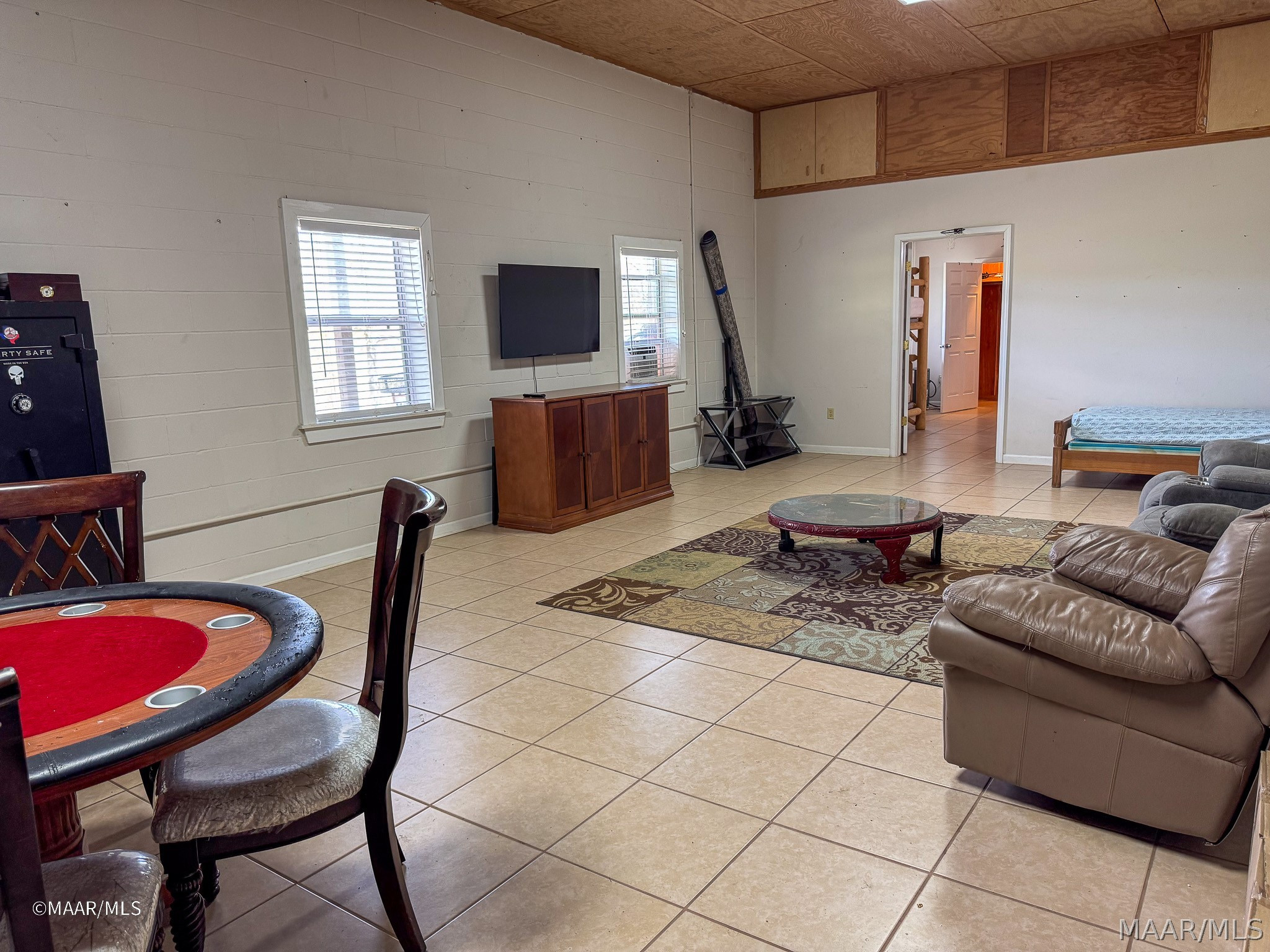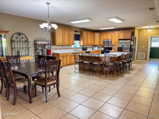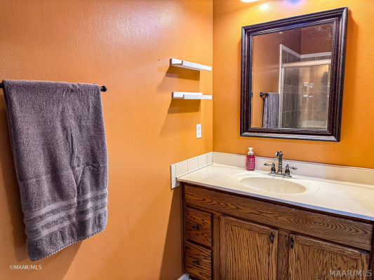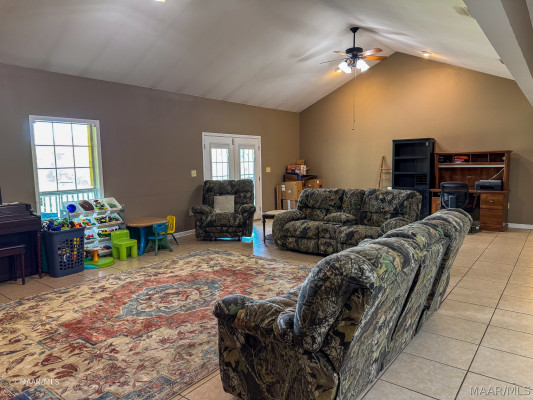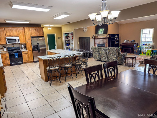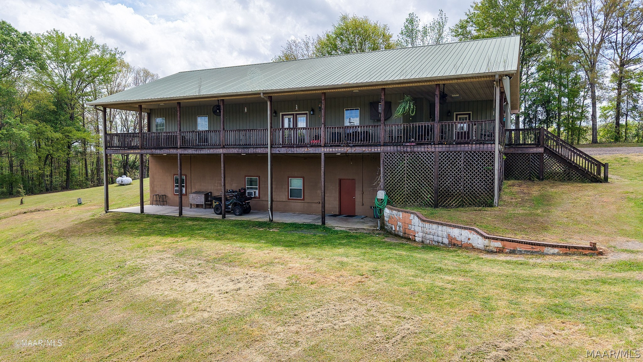 Too many features to list….Plenty of room to roam! Built in 2011, this property has SOOOO much to offer the avid sportsman….And conveniently located! The oversized back porch provides a gorgeous view of the stocked pond as well as frequent sightings of deer, turkey and other wildlife. The pier has Trex decking and is a great place for a fish feeder. Main Level, Open Floor Plan: Great room with cathedral ceiling & propane gas log fireplace, Dining area, and sizable Kitchen with a HUGE work island/breakfast bar. 3 bedrooms, 2.5 baths and Laundry room complete the 2,463+/- square footage of the main floor. The 1,053+/- Sq Ft finished basement serves as a storm shelter or guest quarters….spacious Recreation room with living/dining area, wired/plumbed for kitchenette, full bath, Cedar closet and bunk room that sleeps 7. Ohhh, talk about storms….The Tankless water heater and generator are especially appreciated when the power goes out. The 120′ x 80’+/- pole barn has a Game & Fish-cleaning station, a container/workshop and plenty of storage for your ATV, tractor and implements. Paved Drive. PLUS- 2 scuppernong rows & LOTS of PEAR TREES! Need room for more guests?? Metal RV carport and RV hookup. Utilities: AL Power, City of Pine Hill water, septic.