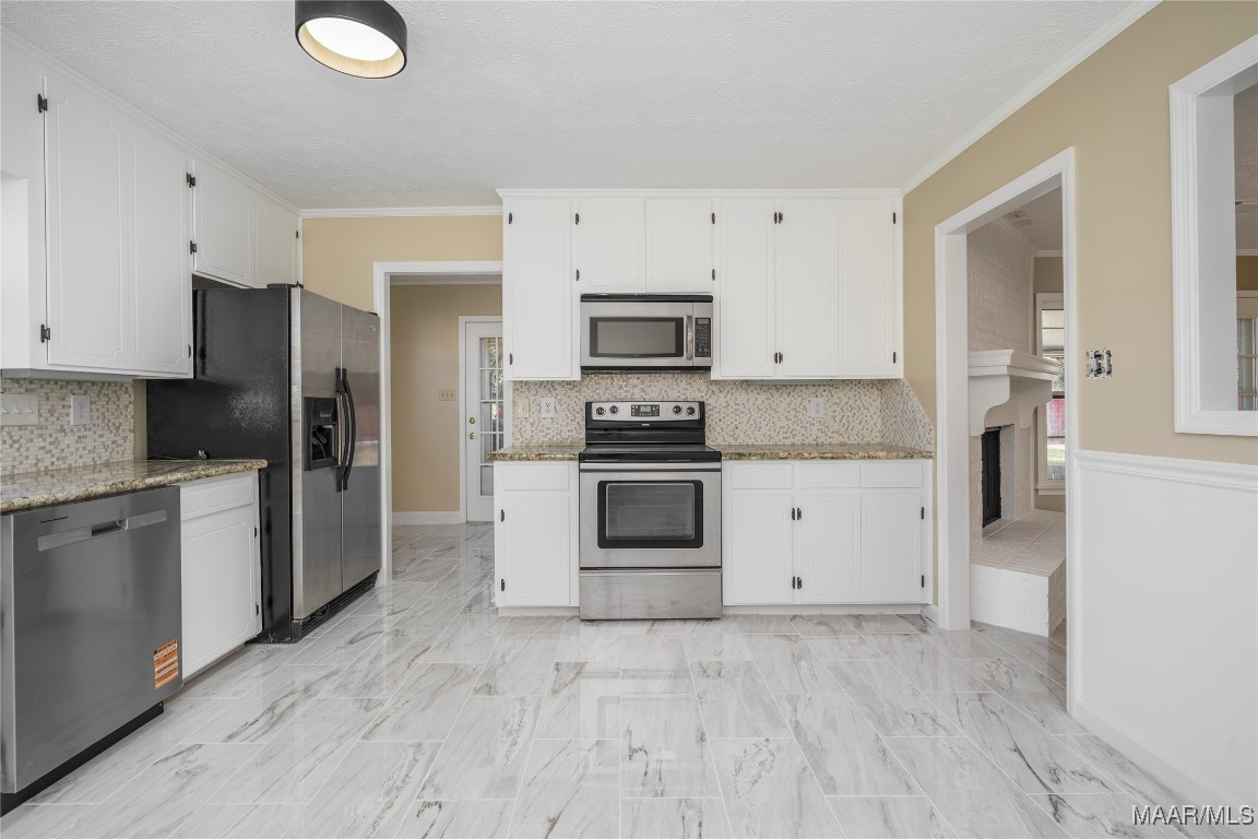 The kitchen is open to the great room and showcases granite countertops, an attractive backsplash, and stainless steel appliances, including a smooth-top electric range, microwave, and dishwasher—perfect for everyday living and gatherings.