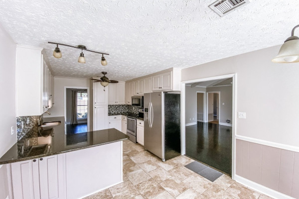 Beautiful four bedroom / two bathroom home in Brookwood Estates, conveniently located in the heart of Prattville and located on a Loop which means low drive-by traffic. Just off the Foyer is the Living room / Dining room Combo. There is also a spacious Den with vaulted ceiling and attractive fireplace (just for decor – no wood burning allowed). The updated Kitchen features a breakfast bar, breakfast nook with bay window, pantry, granite countertops & stainless appliances including Refrigerator. Both bathrooms have also been nicely updated. All bedrooms and bathroom cabinets are being repainted a light neutral color. Ceiling fans in all bedrooms, Den & Kitchen. There is a tankless water heater for continuous hot water. There is a 2-car garage with an attached storage room and also pull-down stairs for attic storage. Outside you will find a fully fenced backyard, a large patio for entertaining, and a 10 X 12 storage shed. 1 dog under 25 lbs may be allowed with prior owner approval. No smoking on the premises. Available January 1st.