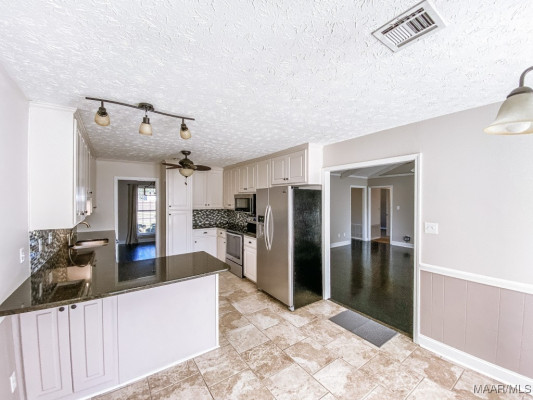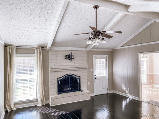 Beautiful four bedroom / two bathroom home in Brookwood Estates, conveniently located in the heart of Prattville and located on a Loop which means low drive-by traffic. Just off the Foyer is the Living room / Dining room Combo. There is also a spacious Den with vaulted ceiling and attractive fireplace (just for decor – no wood burning allowed). The updated Kitchen features a breakfast bar, breakfast nook with bay window, pantry, granite countertops & stainless appliances including Refrigerator. Both bathrooms have also been nicely updated. All bedrooms and bathroom cabinets are being repainted a light neutral color. Ceiling fans in all bedrooms, Den & Kitchen. There is a tankless water heater for continuous hot water. There is a 2-car garage with an attached storage room and also pull-down stairs for attic storage. Outside you will find a fully fenced backyard, a large patio for entertaining, and a 10 X 12 storage shed. 1 dog under 25 lbs may be allowed with prior owner approval. No smoking on the premises. Available January 1st.