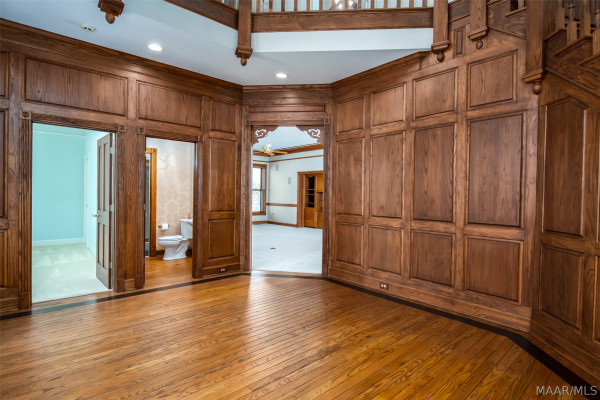 Newly refinished mahogany double front doors with frosted glass set the tone for the remarkable interiors. Step into a grand two-story foyer, framed by oak floating-panel wainscoting, grooved oak floors accented in mahogany, and a custom replica Victorian chandelier. Ten-foot ceilings continue throughout the home, creating a sense of openness and elegance in every room.