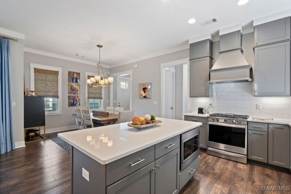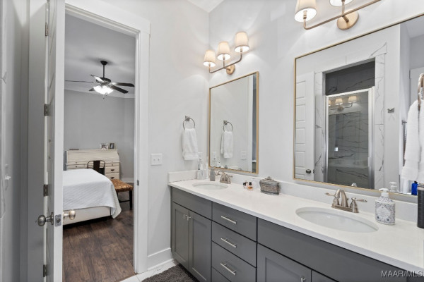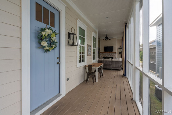 Welcome to this beautifully designed one-owner home at The Waters in Pike Road, where thoughtful details and modern finishes blend perfectly with comfort and style. Step inside to find luxury vinyl plank flooring throughout the common areas and bedrooms, creating a seamless and low-maintenance flow. The home features 3 bedrooms and 2 full baths on the main level, including the spacious primary suite, plus a versatile bonus room upstairs that can be tailored to your needs—whether a media room, home office, or guest retreat. Also upstairs is a private 4th bedroom and another full bath. Amazing custom window shades have been installed throughout the home. The open concept kitchen is a true centerpiece with floor-to-ceiling cabinetry, a sleek cabinet-faced vent hood, quartz countertops, and stainless appliances. The great room opens effortlessly to the very large screened porch through sliding glass doors, where you’ll enjoy a stunning outdoor fireplace—a perfect spot for entertaining or quiet evenings at home. The primary suite offers a peaceful retreat with a large bedroom and a designer bath featuring a fully tiled shower, soaking tub with upgraded wall-mounted faucet with handheld sprayer, and a generous closet. All bathrooms are beautifully finished with professionally selected designer cabinetry and countertops, adding both elegance and function. The lighting throughout the home adds perfect accents. Additional features include a 2-car garage, a popular and functional floor plan, and a home that has been very well loved and meticulously maintained. Enjoy all that The Waters lifestyle has to offer with close proximity to Dawson Creek Park, Blue Heron Pool Club, and the community’s unmatched amenities. This is a rare opportunity to own a thoughtfully crafted home in one of Pike Road’s most desirable neighborhoods.