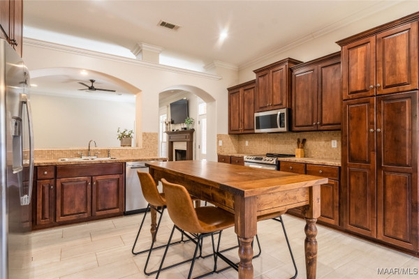 Large eat-in kitchen with custom cabinets
