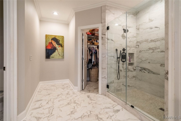 Remodeled primary bathroom with large custom double shower