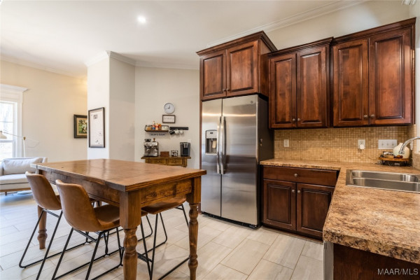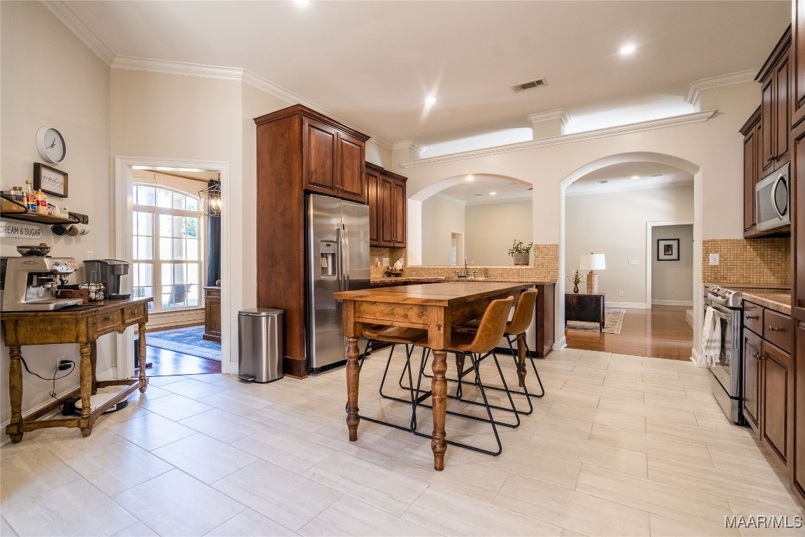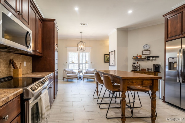 Large eat-in kitchen with custom cabinets