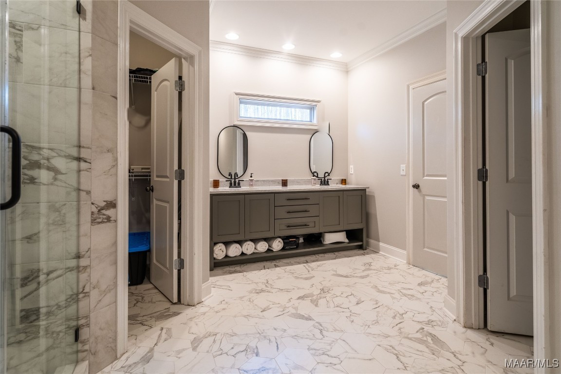 Remodeled primary bathroom with large custom double shower
