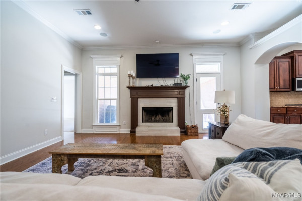 Custom wood trim and hardwood floors in main living areas