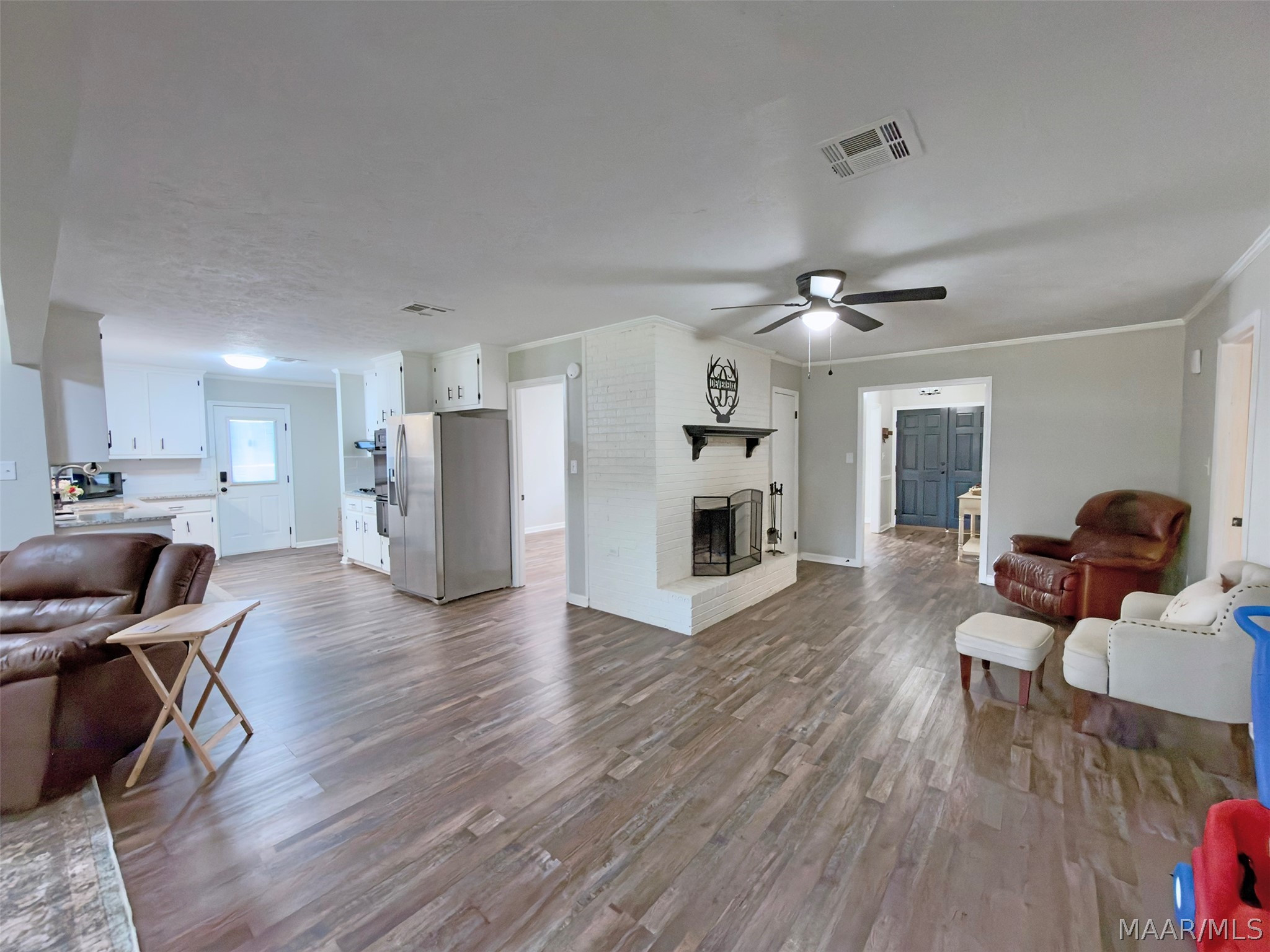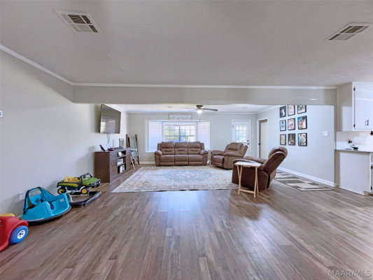 Wow! Large Updated 4 Bedroom 2 Bath Prattville home with over 1 acre of land and so much charm! Every room in this home is spacious and offers so much flexibility. Upon entrance you are greeted by an oversized formal dining and living room! Yes that is a 14′ long table in that room! The great room is full of natural light and offers enough space to spread out! Open to the updated kitchen featuring granite countertops, a gas cooktop and is even plumbed for an ice maker! And a pantry so large you have tons of options! Make it into your very own at home coffee shop or stock up on your Costco goods for the next year! You won’t find any carpet in this home! All LVP floors and hard tile in the bathrooms! Outside you will find one large yard with two separate fenced spaces! Space for all your toys, trailers or whatever you want! The two metal storage buildings remain as well! And Newton Park and Playground are right around the corner!