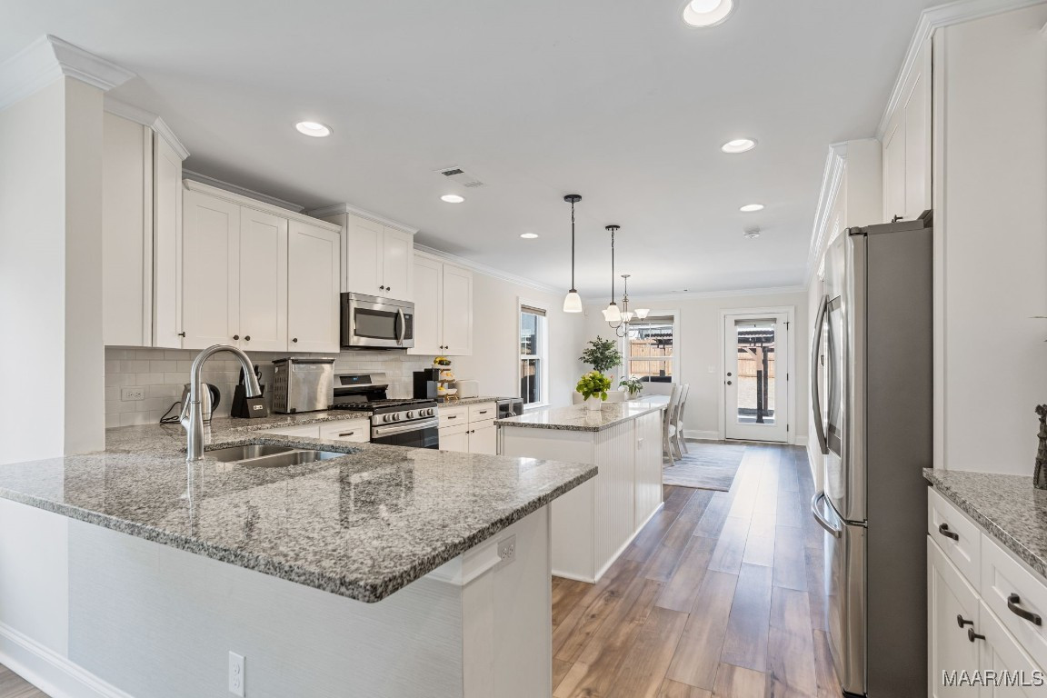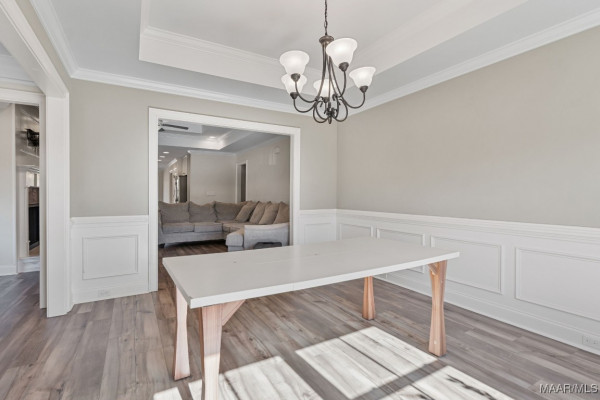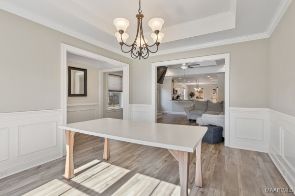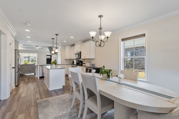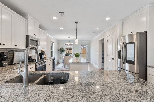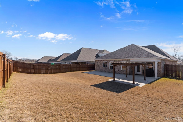 Step into this beautifully designed open-concept home, ideal for entertaining and everyday living. This 4-bedroom, 2-bath residence welcomes you with an elegant foyer leading into a formal dining room accented by rich hardwood flooring. The spacious living area features a tray ceiling, gas fireplace, and seamless flow into the kitchen, which boasts granite countertops and a large center island as well as a Samsung smart refrigerator which will be staying! The primary suite offers a generous walk-in closet and a spa-like bathroom with double granite vanities, a soaking tub, and a tiled shower with glass enclosure. Also check out the spacious laundry room with updated cabinets. Three additional bedrooms provide ample space for family or guests. Spray foam insulation ensures energy efficiency and added attic storage. Enjoy outdoor living in the fully privacy-fenced backyard, complete with a new pergola and extended concrete patio—perfect for relaxing or entertaining. Conveniently located just 10–15 minutes from Maxwell AFB.