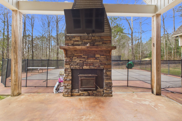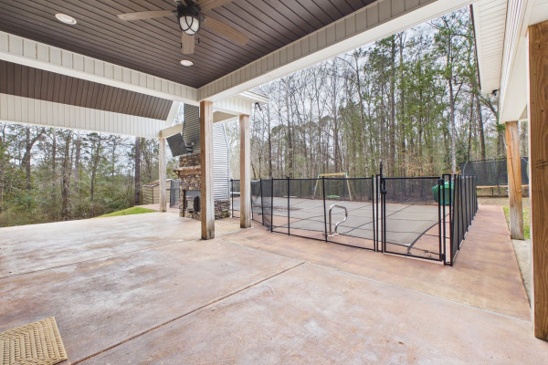Step outside and enjoy an impressive outdoor area ideal for entertaining and summertime fun. The in-ground pool serves as the centerpiece of the backyard, surrounded by ample patio space for relaxing and gatherings, along with safety features for added peace of mind. A large covered porch provides year-round enjoyment—perfect for outdoor dining, relaxing, or hosting friends and family.