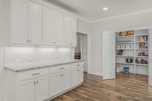 This beautiful home in the Glennbrooke neighborhood is sure to catch your eye. With 3705 square feet of space on the main level and an unfinished basement with 2800 sq ft. This 4-bedroom, 4-bathroom home has it all. Inside, you will find a quiet study on one side of the entrance and a formal dining room on the other. The large kitchen is a cook’s dream, offering tons of cabinet space, a big pantry, and a large island for entertaining. It opens right up into the great room, which has a cozy corner fireplace and big windows that look out onto the covered back porch. The layout is designed for privacy. The main bedroom is tucked away on its own side of the house and features tray ceilings, a deep soaking tub, a roomy shower, and a massive walk-in closet. On the other side of the home, there are three more bedrooms and two full bathrooms, plus a handy mudroom area and laundry room near the garage. Upstairs, there is a huge bonus room with its own sitting area and another full bathroom. The basement is ready to be finished with wiring for electrical and plumbing. The outdoor space is just as impressive, featuring a large backyard that overlooks a peaceful pond, offering a beautiful view and a sense of privacy. Living in Glennbrooke means you also get to enjoy amazing community perks like three swimming pools, a splash pad, playgrounds, gym, and a walking trail around the water. Located in the top-rated Prattville school district and close to local dining and shopping, this home has everything you need.