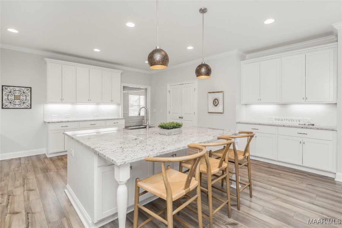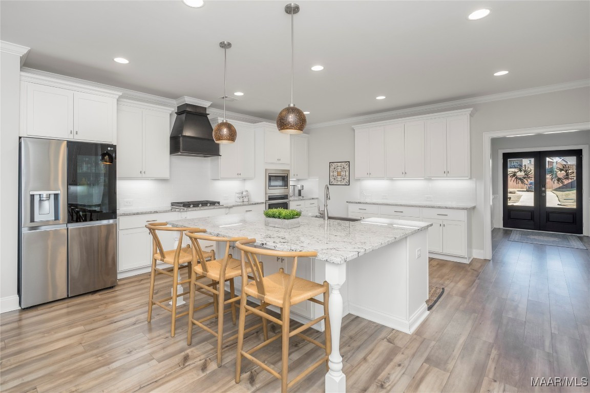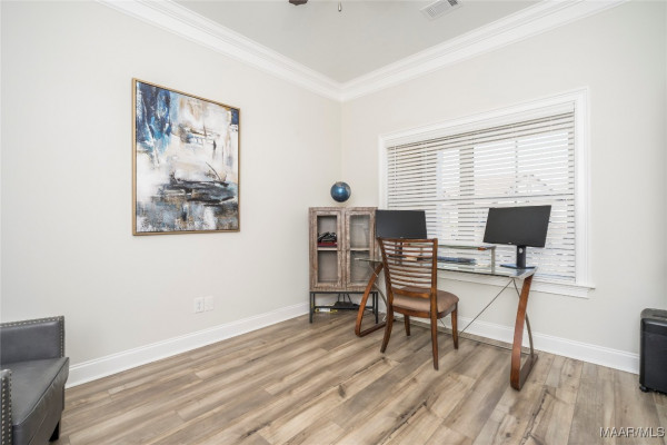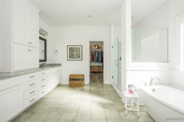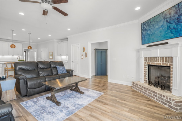 This beautiful home in the Glennbrooke neighborhood is sure to catch your eye. With 3705 square feet of space on the main level and an unfinished basement with 2800 sq ft. This 4-bedroom, 4-bathroom home has it all. Inside, you will find a quiet study on one side of the entrance and a formal dining room on the other. The large kitchen is a cook’s dream, offering tons of cabinet space, a big pantry, and a large island for entertaining. It opens right up into the great room, which has a cozy corner fireplace and big windows that look out onto the covered back porch. The layout is designed for privacy. The main bedroom is tucked away on its own side of the house and features tray ceilings, a deep soaking tub, a roomy shower, and a massive walk-in closet. On the other side of the home, there are three more bedrooms and two full bathrooms, plus a handy mudroom area and laundry room near the garage. Upstairs, there is a huge bonus room with its own sitting area and another full bathroom. The basement is ready to be finished with wiring for electrical and plumbing. The outdoor space is just as impressive, featuring a large backyard that overlooks a peaceful pond, offering a beautiful view and a sense of privacy. Living in Glennbrooke means you also get to enjoy amazing community perks like three swimming pools, a splash pad, playgrounds, gym, and a walking trail around the water. Located in the top-rated Prattville school district and close to local dining and shopping, this home has everything you need.