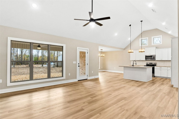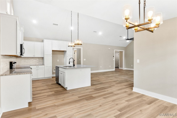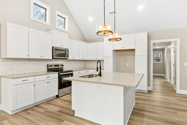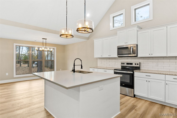 Deer Run Subdivision-Clanton, AL, Just off I-65 Exit 212, near Jeff State College, UAB-St Vincent’s Hospital, in city limits. 2,121 sq ft plus a 2 car garage. Sits on .52 +/- of an acre. Full brick and stacked stone. Enter the spacious foyer into the great room w/soaring vaulted ceilings open to the dining area & kitchen w/smooth top stove, microwave, dishwasher, stainless appliances, over sized island and solid surface counter tops. All overlooking the back yard with a large covered porch. The master is spacious w/vaulted ceilings, master bath w/double shower, garden tub, double sinks, oversized master closet/dressing room, any girls dream. Master can be accessed from the great room & private entrance from the garage (side entry) through the mud room (w/bench, hangers & cubby holes for storage) & laundry room. 3 other bedrooms & a full bath separate from the master. Carpet in bedrooms only all other flooring hard tile & luxury vinyl plank. Shown by appt only to preapproved buyers.