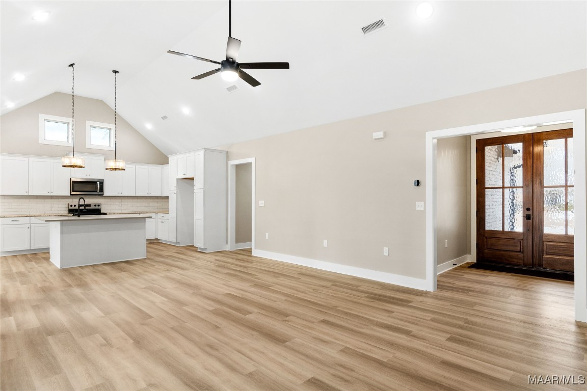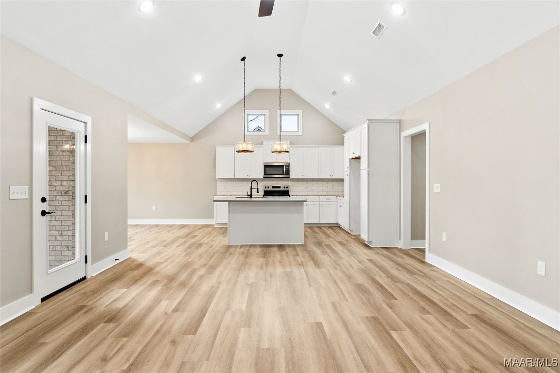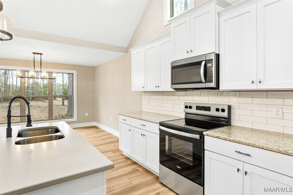 Deer Run Subdivision-Clanton, AL, Just off I-65 Exit 212, near Jeff State College, UAB-St Vincent’s Hospital, in city limits. 2,121 sq ft plus a 2 car garage. Sits on .52 +/- of an acre. Full brick and stacked stone. Enter the spacious foyer into the great room w/soaring vaulted ceilings open to the dining area & kitchen w/smooth top stove, microwave, dishwasher, stainless appliances, over sized island and solid surface counter tops. All overlooking the back yard with a large covered porch. The master is spacious w/vaulted ceilings, master bath w/double shower, garden tub, double sinks, oversized master closet/dressing room, any girls dream. Master can be accessed from the great room & private entrance from the garage (side entry) through the mud room (w/bench, hangers & cubby holes for storage) & laundry room. 3 other bedrooms & a full bath separate from the master. Carpet in bedrooms only all other flooring hard tile & luxury vinyl plank. Shown by appt only to preapproved buyers.
