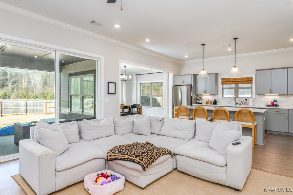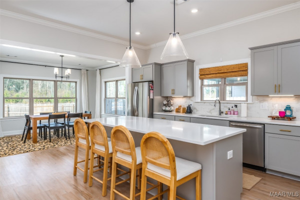 New Listing in Pike Road! They wish they could take it with them! This well-kept and much-loved home is almost new and includes all of the move-in ready features! Full privacy fence, blinds and stainless refrigerator are all included in this special one-level design. The Sheffield plan is a 3-sided brick home with Hardie & stone accents, has 3-bedrooms, 2.5 baths and offers tons of character! The circular foyer welcomes you into a gallery hallway that leads to a large great room with 10 ft. ceilings, a gas fireplace, and a beautiful 12 ft. sliding glass door opens your view to the roomy 12×20 covered back patio and fully fenced back yard with a private wooded view. This plan is comfortable and perfect for entertaining! The kitchen has vaulted ceilings and features an oversized work island with enough room for extra seating, an upgraded appliance package with gas cooktop & matching cabinet vent hood, and a large walk-in pantry. The dining area is bright and spacious with a view to the backyard, and the half bath is conveniently located off of the family room and close to the garage. The master suite has double vanities, a tiled walk-in shower, a separate oversized garden tub and a huge walk-in closet. The spare bedrooms both have large walk-in closets. There’s an amazing loft storage space with a tucked away stairwell that leads you to this upstairs space. The rear loading attached garage provides a long stately driveway with ample parking and the morning side porch is a charming plus! Additional home features include High Energy standards with Smart Home Features, Low-E Windows, a Tankless gas water heater, Architectural shingles and gutters. Penn Meadows’ convenient location is nestled in a private wooded setting, is less than a mile to the new Publix Shopping Center in Pike Road, and easy access to Pike Road Schools, East Chase Shopping, and I-85.