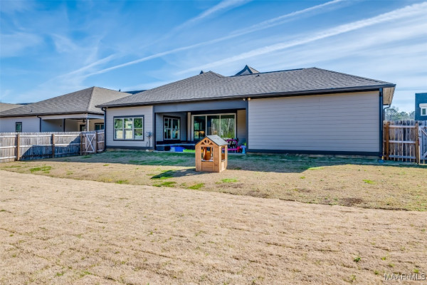 New Listing in Pike Road! They wish they could take it with them! This well-kept and much-loved home is almost new and includes all of the move-in ready features! Full privacy fence, blinds and stainless refrigerator are all included in this special one-level design. The Sheffield plan is a 3-sided brick home with Hardie & stone accents, has 3-bedrooms, 2.5 baths and offers tons of character! The circular foyer welcomes you into a gallery hallway that leads to a large great room with 10 ft. ceilings, a gas fireplace, and a beautiful 12 ft. sliding glass door opens your view to the roomy 12×20 covered back patio and fully fenced back yard with a private wooded view. This plan is comfortable and perfect for entertaining! The kitchen has vaulted ceilings and features an oversized work island with enough room for extra seating, an upgraded appliance package with gas cooktop & matching cabinet vent hood, and a large walk-in pantry. The dining area is bright and spacious with a view to the backyard, and the half bath is conveniently located off of the family room and close to the garage. The master suite has double vanities, a tiled walk-in shower, a separate oversized garden tub and a huge walk-in closet. The spare bedrooms both have large walk-in closets. There’s an amazing loft storage space with a tucked away stairwell that leads you to this upstairs space. The rear loading attached garage provides a long stately driveway with ample parking and the morning side porch is a charming plus! Additional home features include High Energy standards with Smart Home Features, Low-E Windows, a Tankless gas water heater, Architectural shingles and gutters. Penn Meadows’ convenient location is nestled in a private wooded setting, is less than a mile to the new Publix Shopping Center in Pike Road, and easy access to Pike Road Schools, East Chase Shopping, and I-85.