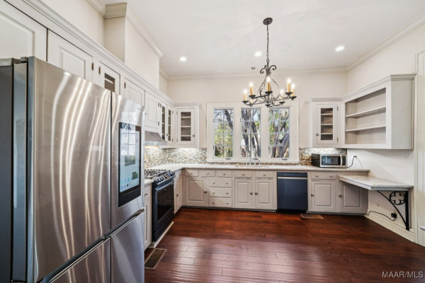 The renovated kitchen blends luxury with period authenticity, featuring cashmere-white granite, handmade Sonoma tile, updated Samsung appliances, and an oversized pantry that can serve as a secure retreat. The main house includes 4 spacious bedrooms (two on the main level and two upstairs) and 2.5 renovated baths, supported by three Trane HVAC systems, two tankless water heaters, a security + camera system, and original hardwood floors enhanced by premium hand-scraped and LVT finishes in select areas.