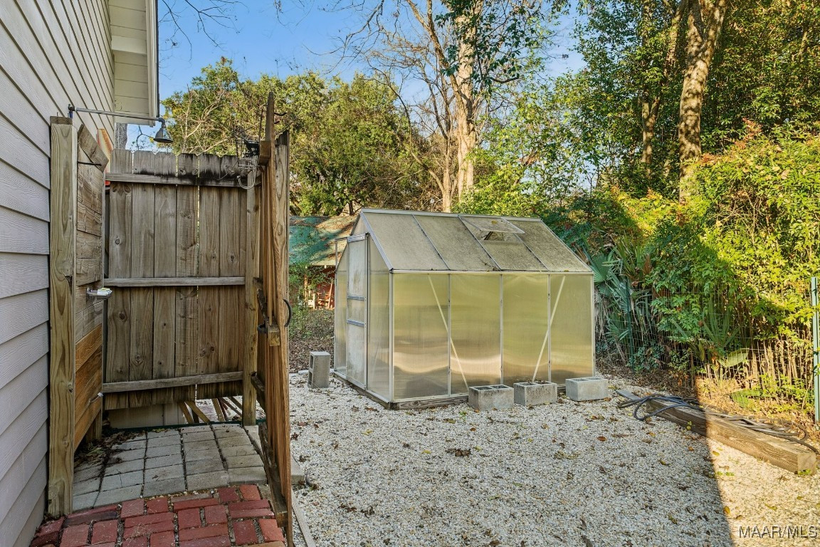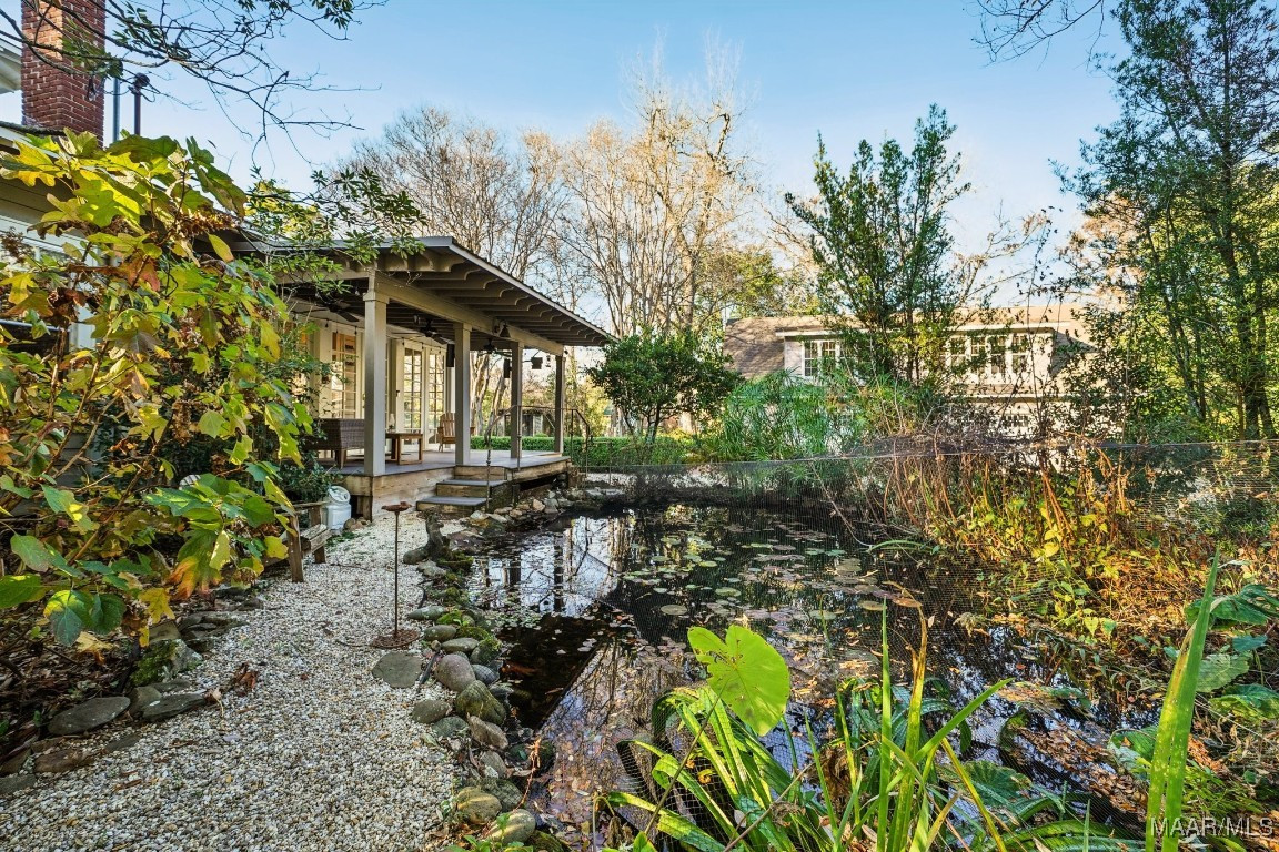 Outdoors, Skyview’s grounds unfold like a private garden estate. Lush landscaping, brick pathways, irrigation, and mature trees create a serene, secluded atmosphere. A large koi pond with waterfall, greenhouse, garden pergola, outdoor shower, and multiple porches evoke a resort-like experience. Custom iron fencing, a remote-controlled gate with copper privacy panels, and an architectural roof with copper accents elevate both beauty and security.
