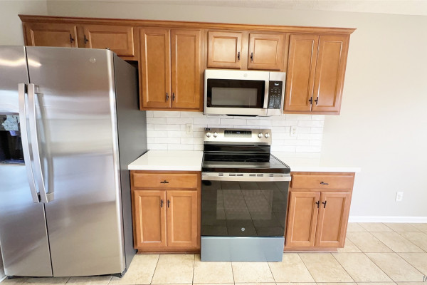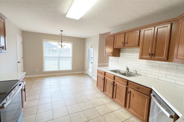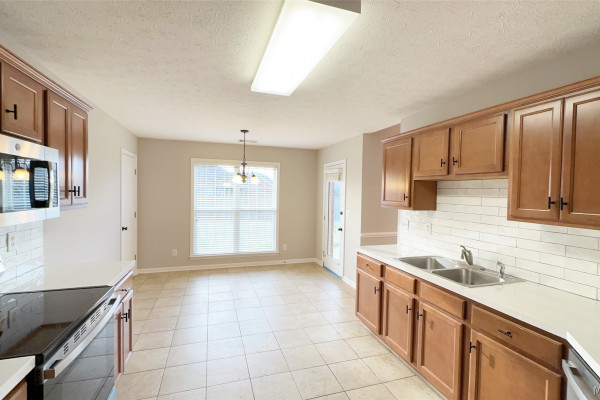 Welcome to this beautifully updated home in the desirable Thorington Trace neighborhood! Thoughtfully maintained and recently refreshed, this property offers the perfect blend of comfort and convenience. Inside, you’ll find new carpet in all bedrooms and a freshly painted interior that gives the home a bright, inviting feel. The spacious kitchen features updated stainless appliances, a breakfast nook and a nice pantry. There is an adjacent and dedicated dining space for entertaining. The cozy great room with a fireplace is the perfect spot to gather and relax. The spacious main bedroom suite boasts a large closet and a bright bathroom complete with a garden tub, double vanity, and separate shower. This home also comes with a brand-new roof, a 2-car garage, and the washer, dryer, and refrigerator remain for your convenience and to save on move-in expenses. Outside, enjoy great curb appeal and a fully fenced backyard with a patio for outdoor living. Located close to shopping, dining, schools, and entertainment, this home truly has it all. The current owner has already made many of the updates so you can move right in and start enjoying your new home at Thorington Trace!