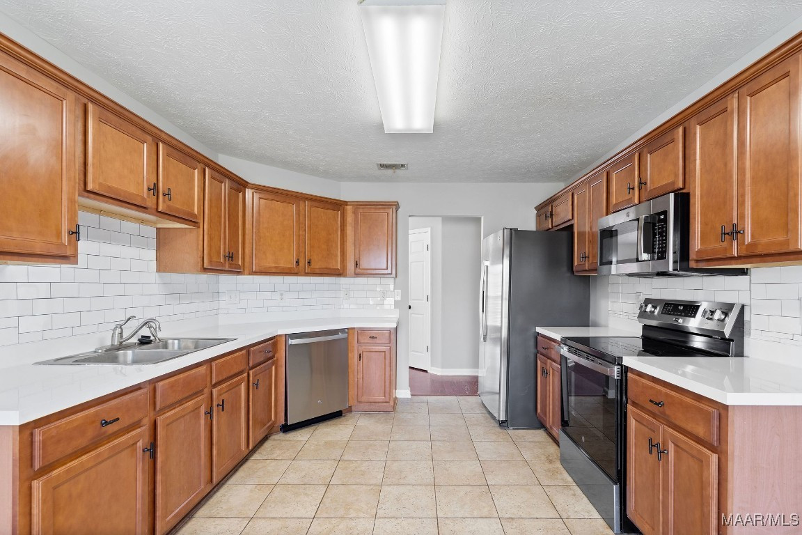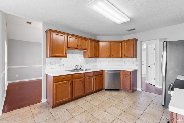 Welcome to this beautifully updated home in the desirable Thorington Trace neighborhood! Thoughtfully maintained and recently refreshed, this property offers the perfect blend of comfort and convenience. Inside, you’ll find new carpet in all bedrooms and a freshly painted interior that gives the home a bright, inviting feel. The spacious kitchen features updated stainless appliances, a breakfast nook and a nice pantry. There is an adjacent and dedicated dining space for entertaining. The cozy great room with a fireplace is the perfect spot to gather and relax. The spacious main bedroom suite boasts a large closet and a bright bathroom complete with a garden tub, double vanity, and separate shower. This home also comes with a brand-new roof, a 2-car garage, and the washer, dryer, and refrigerator remain for your convenience and to save on move-in expenses. Outside, enjoy great curb appeal and a fully fenced backyard with a patio for outdoor living. Located close to shopping, dining, schools, and entertainment, this home truly has it all. The current owner has already made many of the updates so you can move right in and start enjoying your new home at Thorington Trace!