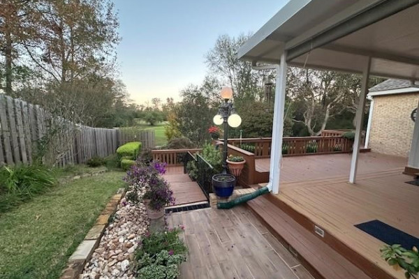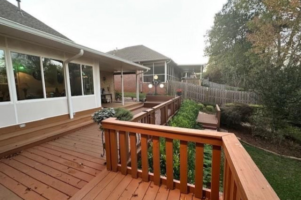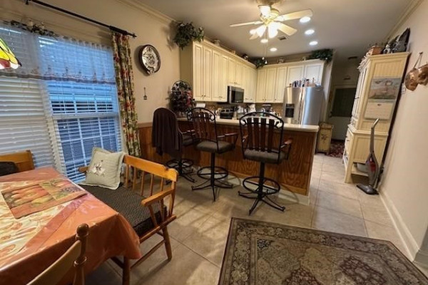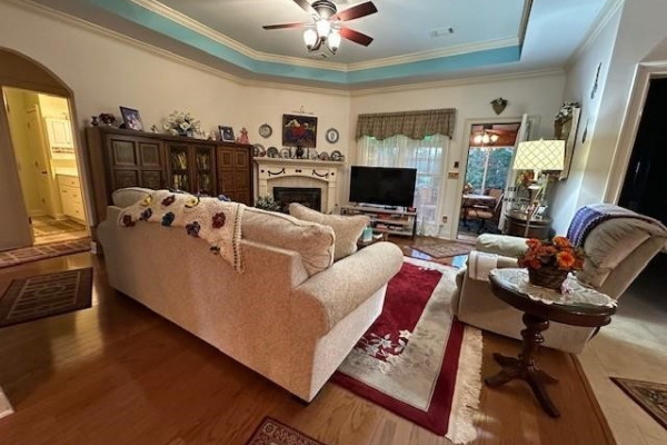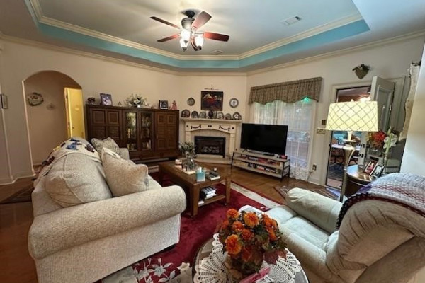 Welcome to this meticulously maintained home in the desirable Magnolia Ridge community of Millbrook. Featuring a thoughtfully designed split floor plan, this 3-bedroom, 2-bath residence offers an ideal blend of comfort, style, and functionality. The open-concept living area seamlessly connects the kitchen, dining, and living rooms—perfect for both entertaining and everyday living. The living room is anchored by a cozy gas fireplace with thermostat control, creating a warm and inviting atmosphere. The eat-in kitchen is well-appointed with Corian countertops, upgraded appliances, a breakfast bar, and a convenient swing door leading directly into the dining room—ideal for both formal and casual gatherings. A sunroom overlooks the golf course, providing a peaceful retreat to relax and enjoy scenic views. Outdoor features include a covered front porch and a charming sitting area with a wrought iron gate just off the dining room. The beautifully maintained yard offers wrought iron fencing for added privacy and a newly installed stone retaining wall (Spring 2025). Additional highlights include an oversized 2-car garage with floored storage above. This home boasts numerous upgrades, including a roof installed in April 2022, HVAC system with metal ductwork for easy maintenance, new toilets, and a beautifully renovated hall bath shower/tub. Hardwood and tile flooring run throughout, with plush carpet in the primary bedroom. The primary bathroom features his-and-her vanities, a spacious shower, toilet closet, and a bidet. The deck offers built-in seating and a covered area, making it ideal for year-round enjoyment and sure to become a favorite gathering spot. Lovingly cared for, this home showcases exceptional upgrades and thoughtful improvements designed for comfort, convenience, and enjoyment.