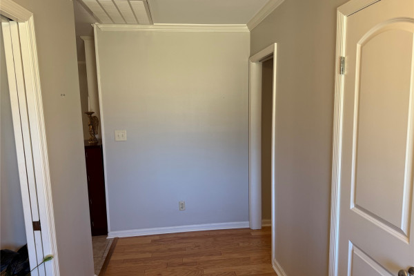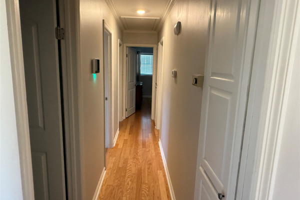 To the right from the foyer down the hall to the bedrooms with the main bedroom on at the end of the hall with the attached main newly remodeled bathroom with shower.