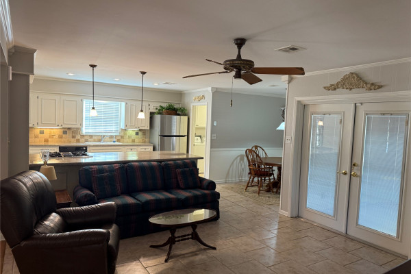 This wonderful home has open floor plan in the living and kitchen area. French doors from den/family room to large screened back porch/Florida room.