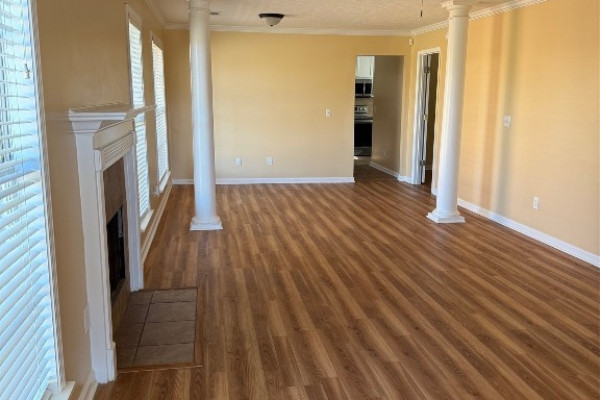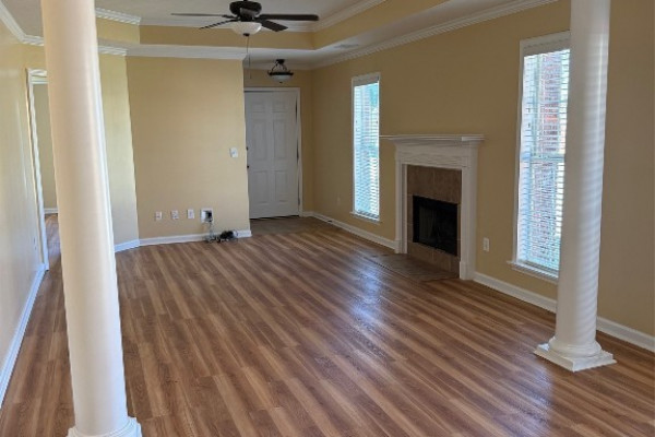This well-maintained home offers fresh interior paint and attractive wood-style flooring throughout. The spacious great room features a cozy fireplace and an adjoining dining area, creating an inviting space for everyday living and entertaining.