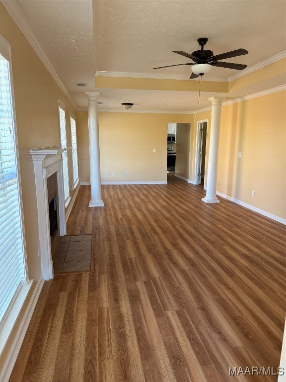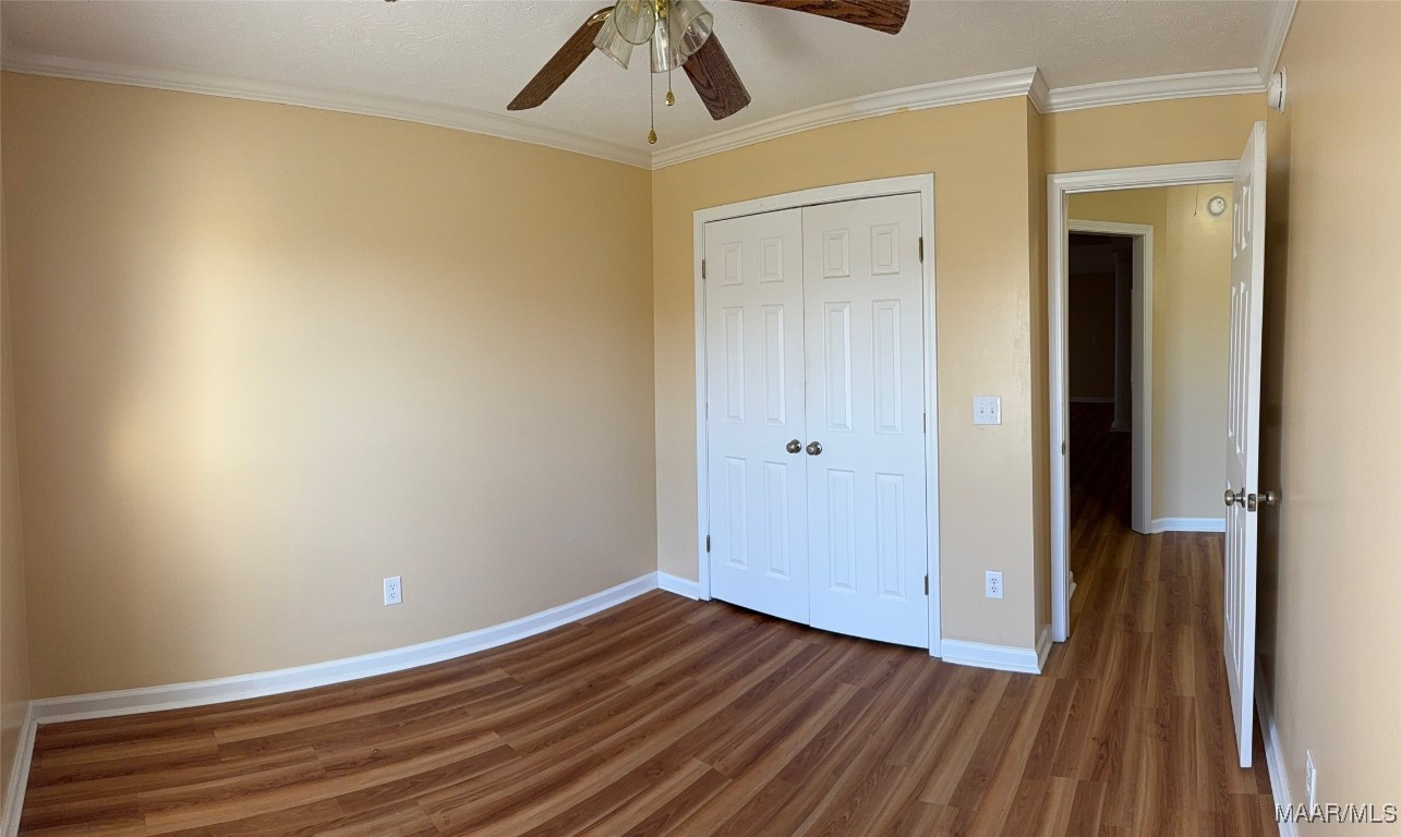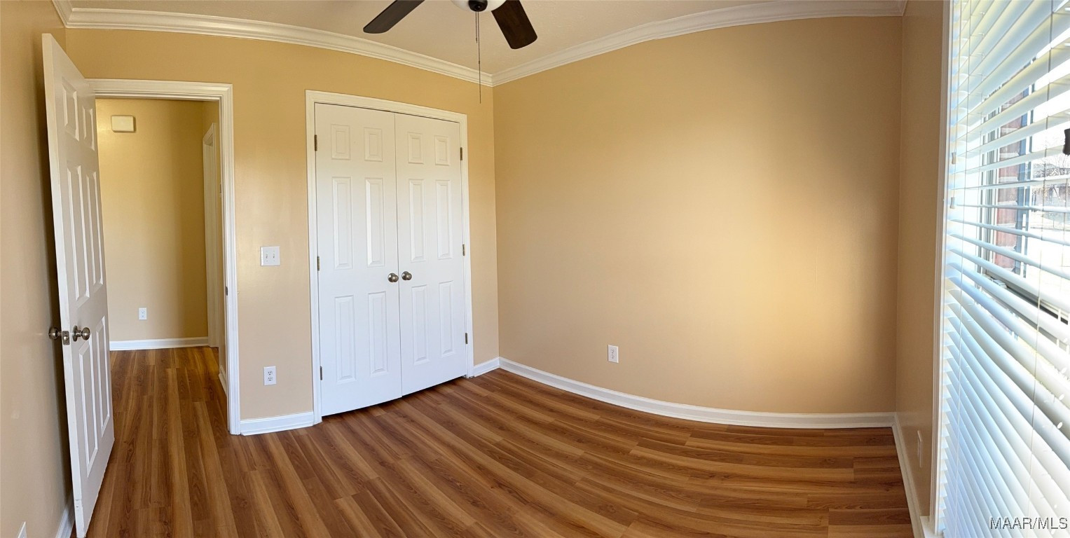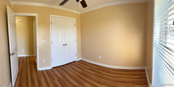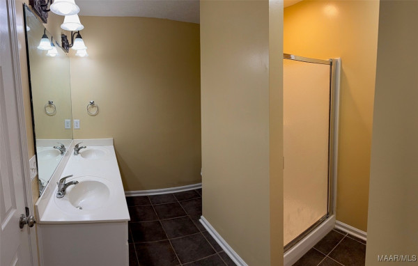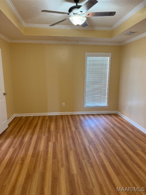 The primary suite includes Box ceilings, dual sinks with extended counter space, a separate walk-in shower, and a large walk-in closet. Bedrooms two and three are both well-sized and share easy access to the second full bath.