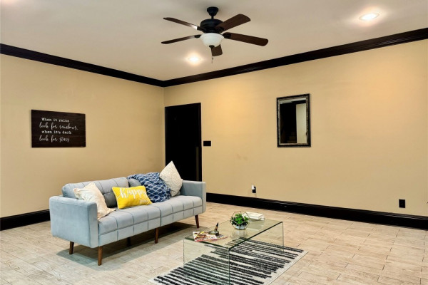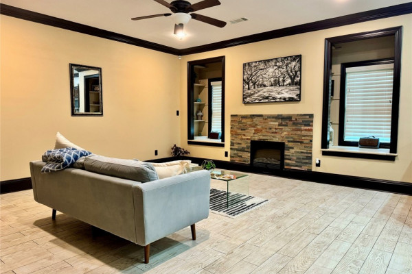 Upstairs, you’ll find a versatile media room complete with built-in wall projection—perfect for movie nights or game days—along with additional space that could easily be expanded into two more rooms. The home is already equipped to support this growth with robust HVAC capacity, offering flexibility for future needs.