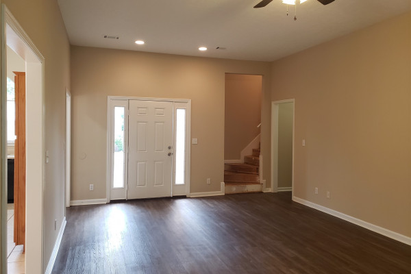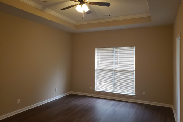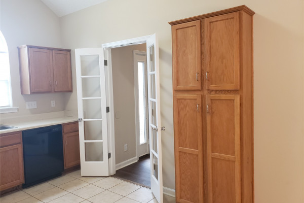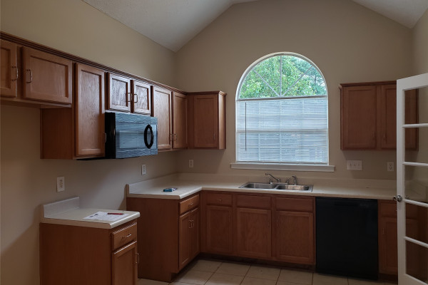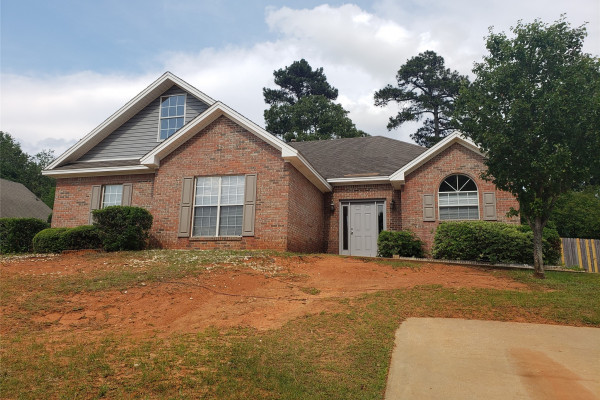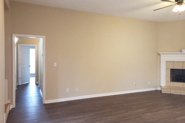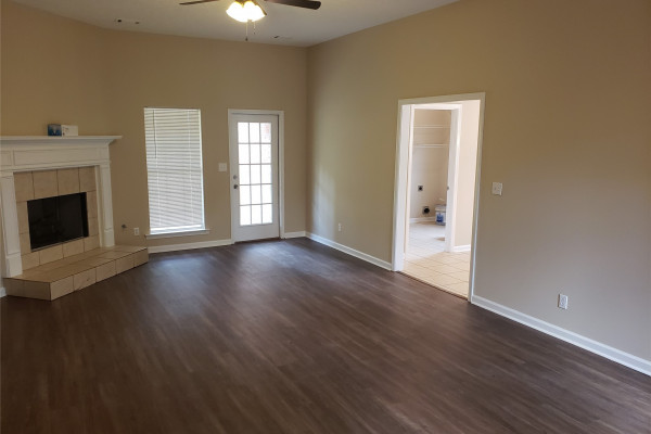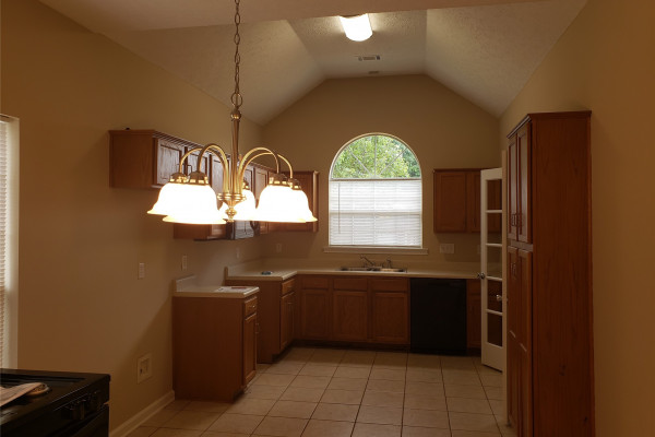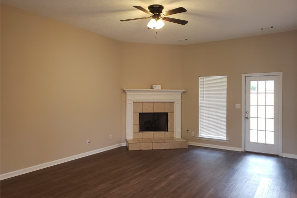 Available April 7, 2026 – This 4 bedroom, 2 bath home with bonus room sits on a fully fenced lot towards the end of Kingston Oaks. All bedroom and baths are on the main level with the bonus room upstairs. The entryway brings you into the living room with high ceilings and a gas log fireplace. The kitchen area is to the right and adjoins to an eating area. The kitchen comes with a dishwasher, gas oven, built in microwave and pantry. The laundry room is to the back of this space and is oversized with a door leading in from the parking area. Three of the bedrooms share the full hall bath and the primary bedroom has its own attached bath and walk in closet. Upstairs is a large bonus room. The back yard has a partially covered patio and is fully fenced in. Pets are negotiable.