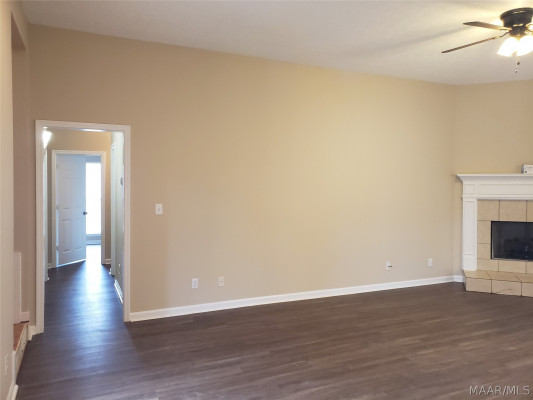 Available April 7, 2026 – This 4 bedroom, 2 bath home with bonus room sits on a fully fenced lot towards the end of Kingston Oaks. All bedroom and baths are on the main level with the bonus room upstairs. The entryway brings you into the living room with high ceilings and a gas log fireplace. The kitchen area is to the right and adjoins to an eating area. The kitchen comes with a dishwasher, gas oven, built in microwave and pantry. The laundry room is to the back of this space and is oversized with a door leading in from the parking area. Three of the bedrooms share the full hall bath and the primary bedroom has its own attached bath and walk in closet. Upstairs is a large bonus room. The back yard has a partially covered patio and is fully fenced in. Pets are negotiable.