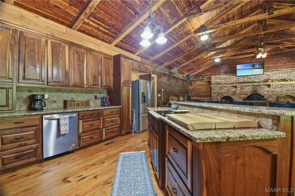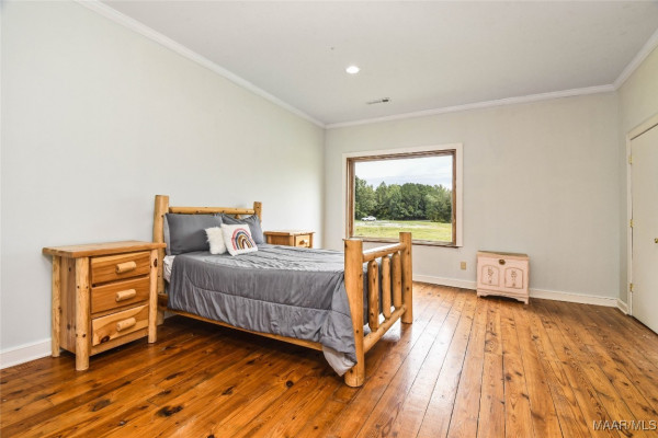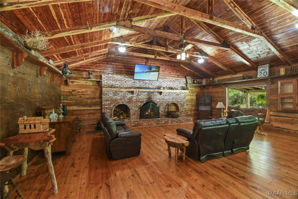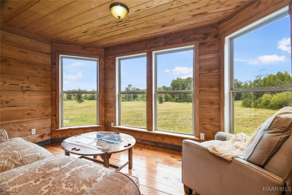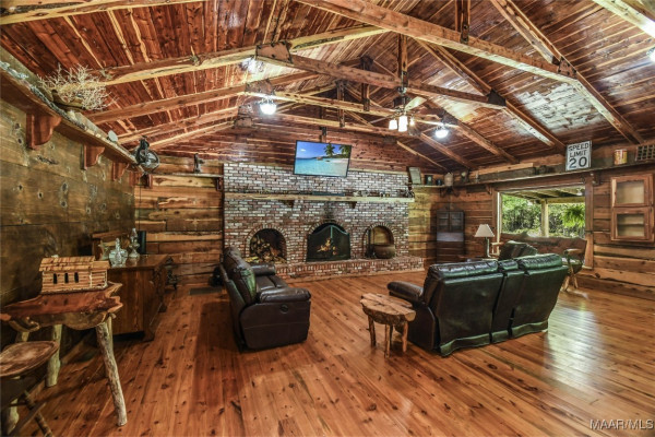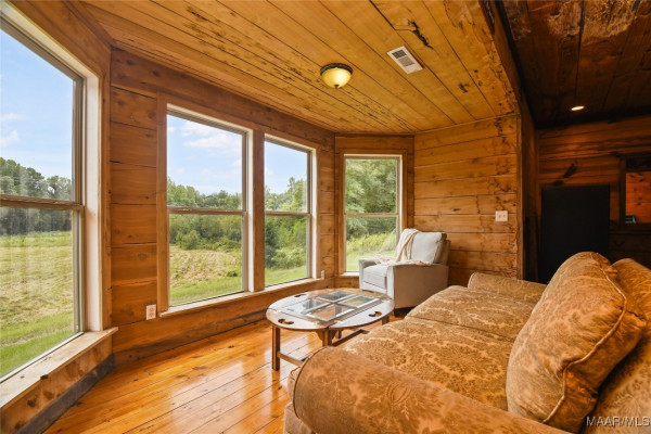 BEAUTIFUL PROPERTY on 9 ACRES with 6 BEDROOMS & 3 BATHS. HUGE GREAT ROOM, CATHEDRAL CEILINGS with WOOD BEAMS giving it that LOG HOME feel. Did I mention the STUNNING, GIGANTIC, WOOD BURNING FIREPLACE? Perfect spot to watch ball games!!! The Family Room is open to the kitchen with Stainless Steel Appliances, Granite Countertops, ISLAND with Breakfast Bar. Dining area is part of the OPEN FLOOR PLAN that makes for great entertaining!!! LARGE MASTER BR with SITTING AREA and gorgeous views out the BAY WINDOW! ALL BRs and baths are spacious in size!! Outside on your COVERED BACK DECK enjoy watching wildlife, while sipping on your favorite beverage. Don’t miss this one!!!
