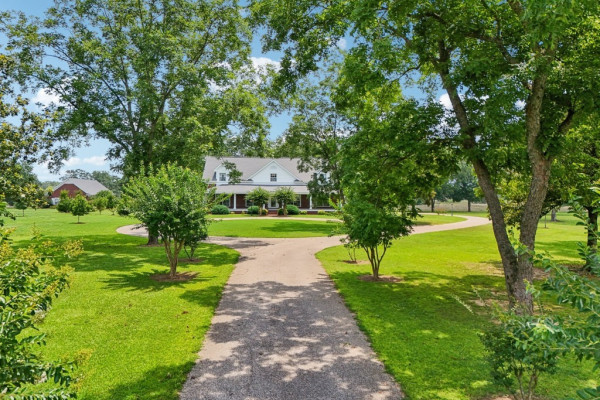 Perfect for those who appreciate the tranquility of rural living while still enjoying the modern comforts with easy access. Nestled in a serene country setting in the highly sought after Collins Chapel area. The  charming custom built house with expansive land is now available. The stunning wrap-around porch is perfect for relaxing and enjoying the views.  There are 4 spacious bedrooms and 3 & 1/2 baths, offering plenty of room for family and guests. Elegant hardwood floors throughout most of the home. Enjoy an abundance of windows throughout the home, flooding the interior with plenty of natural light. Majestic pecan trees adorn the property, adding to its charm. The beautiful level land is ideal for gardening, outdoor activities, or simply enjoying the outdoors. There is plenty of space for a horse of your favorite animals. You will enjoy the 2 car attached carport and a 2 car detached garage with an apartment, and also a large fenced back yard.